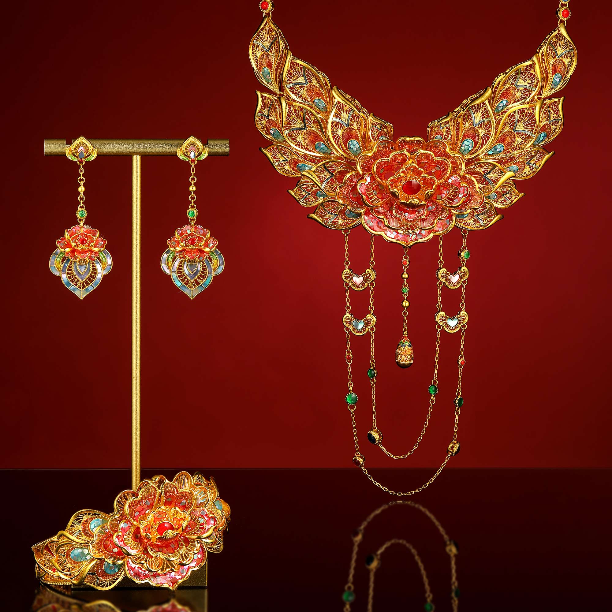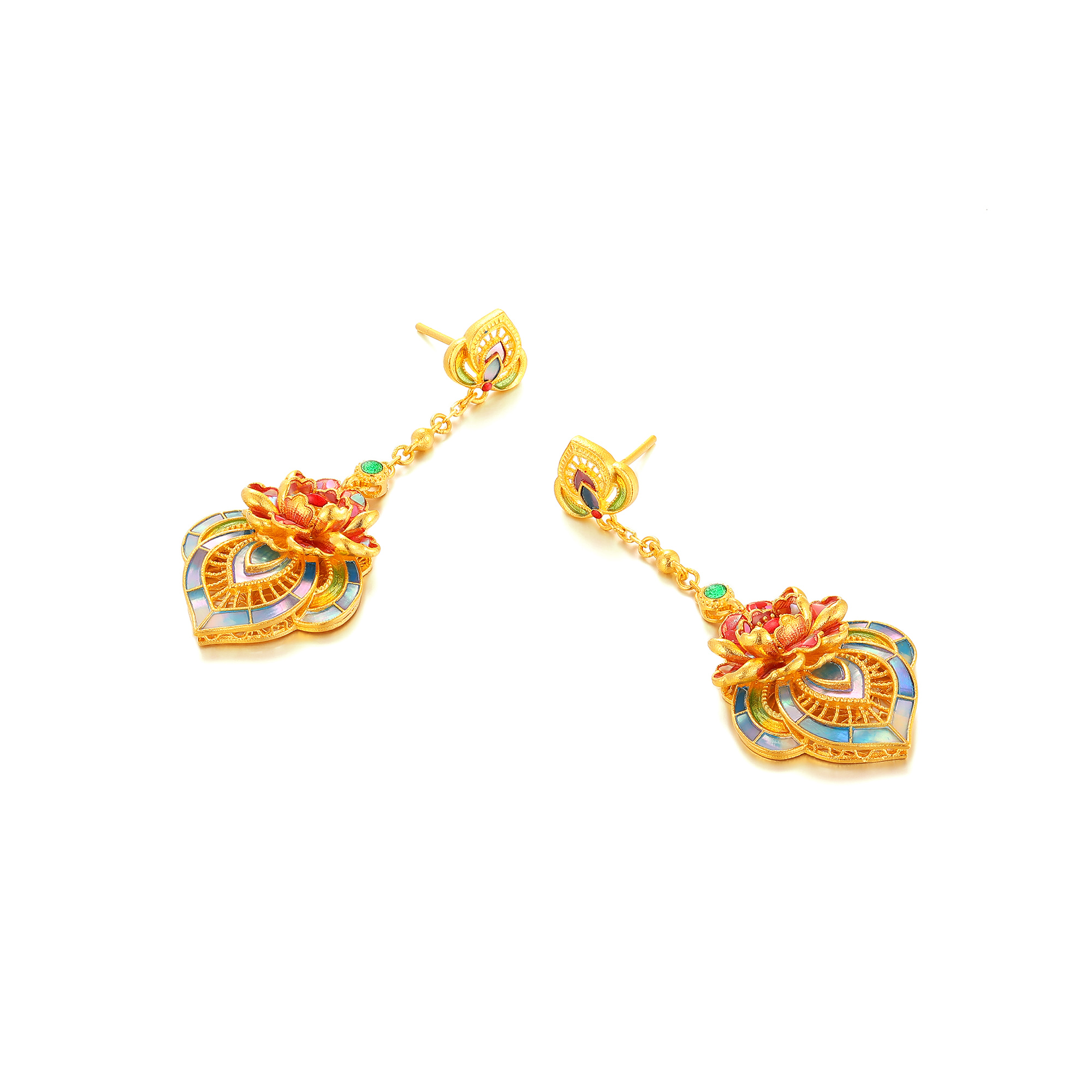 古法奢华绚丽点螺鎏彩国色凤华耳钉