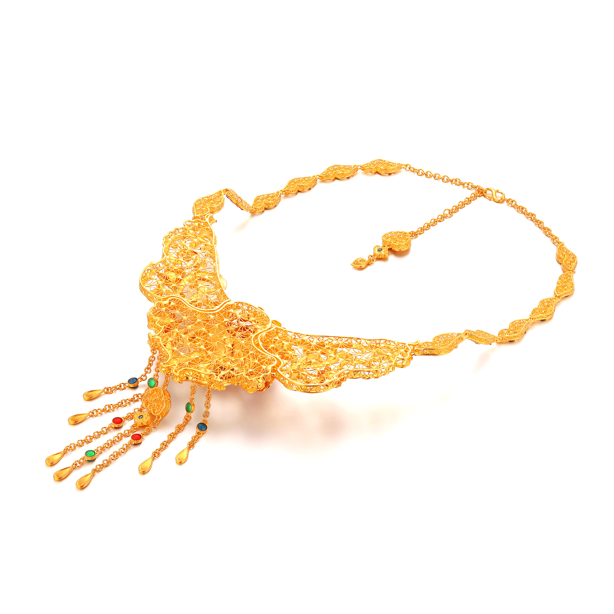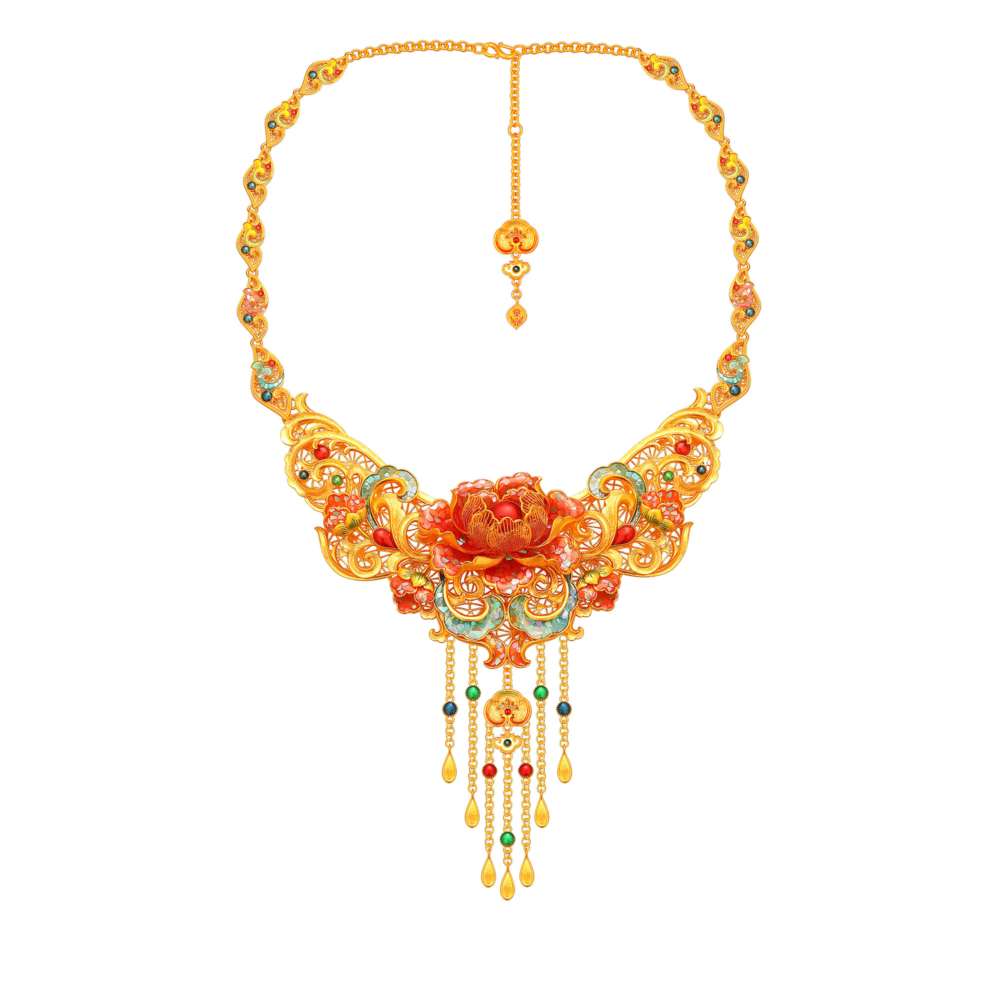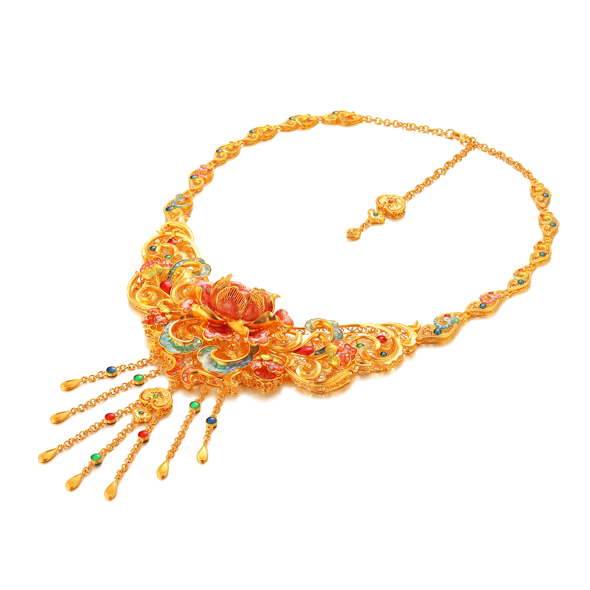 古法奢华典雅点螺鎏彩盛世牡丹套链