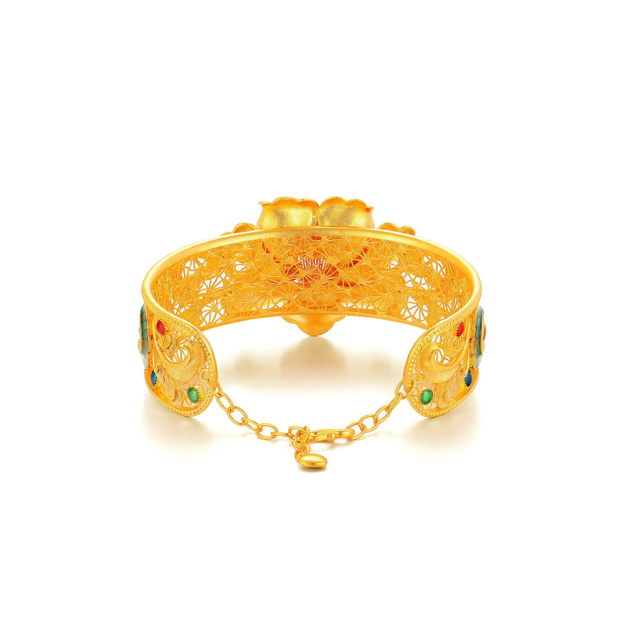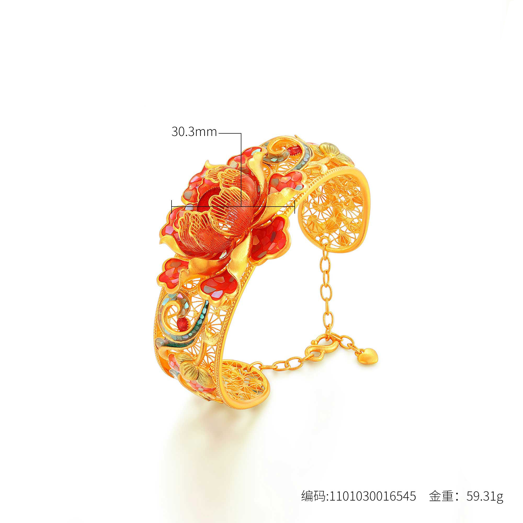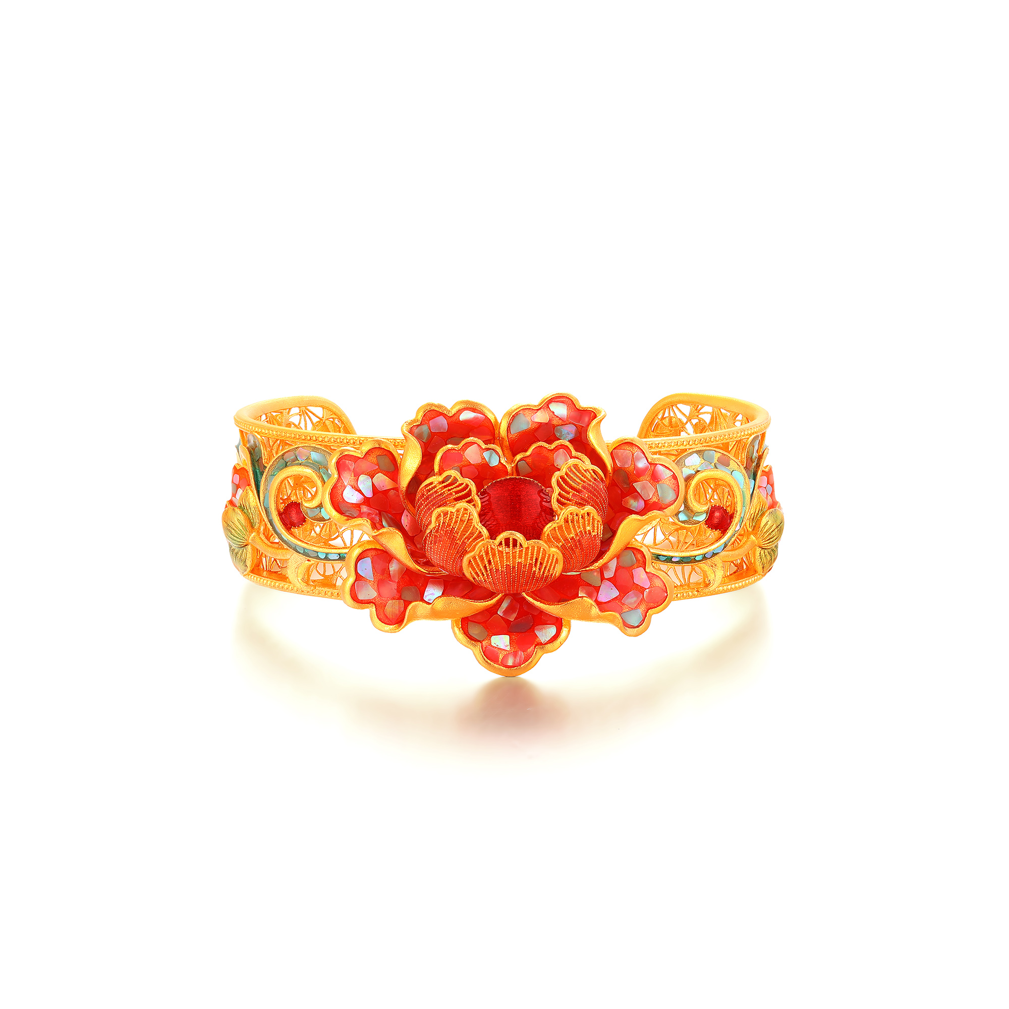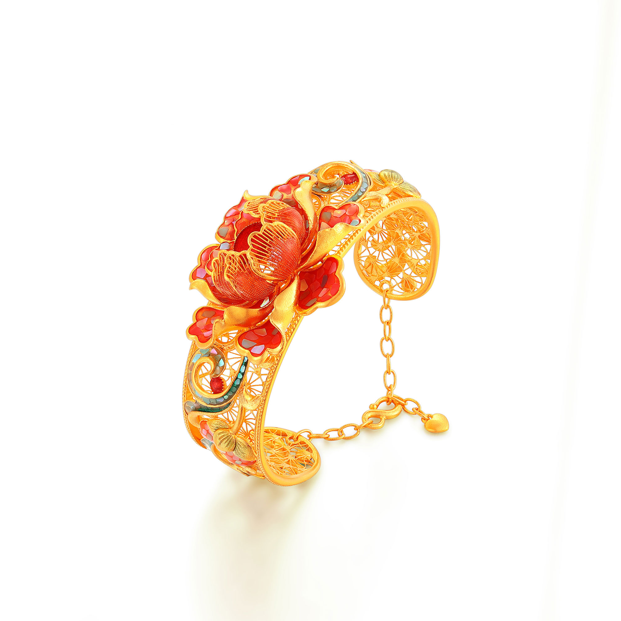 古法奢华典雅点螺鎏彩盛世牡丹镯链