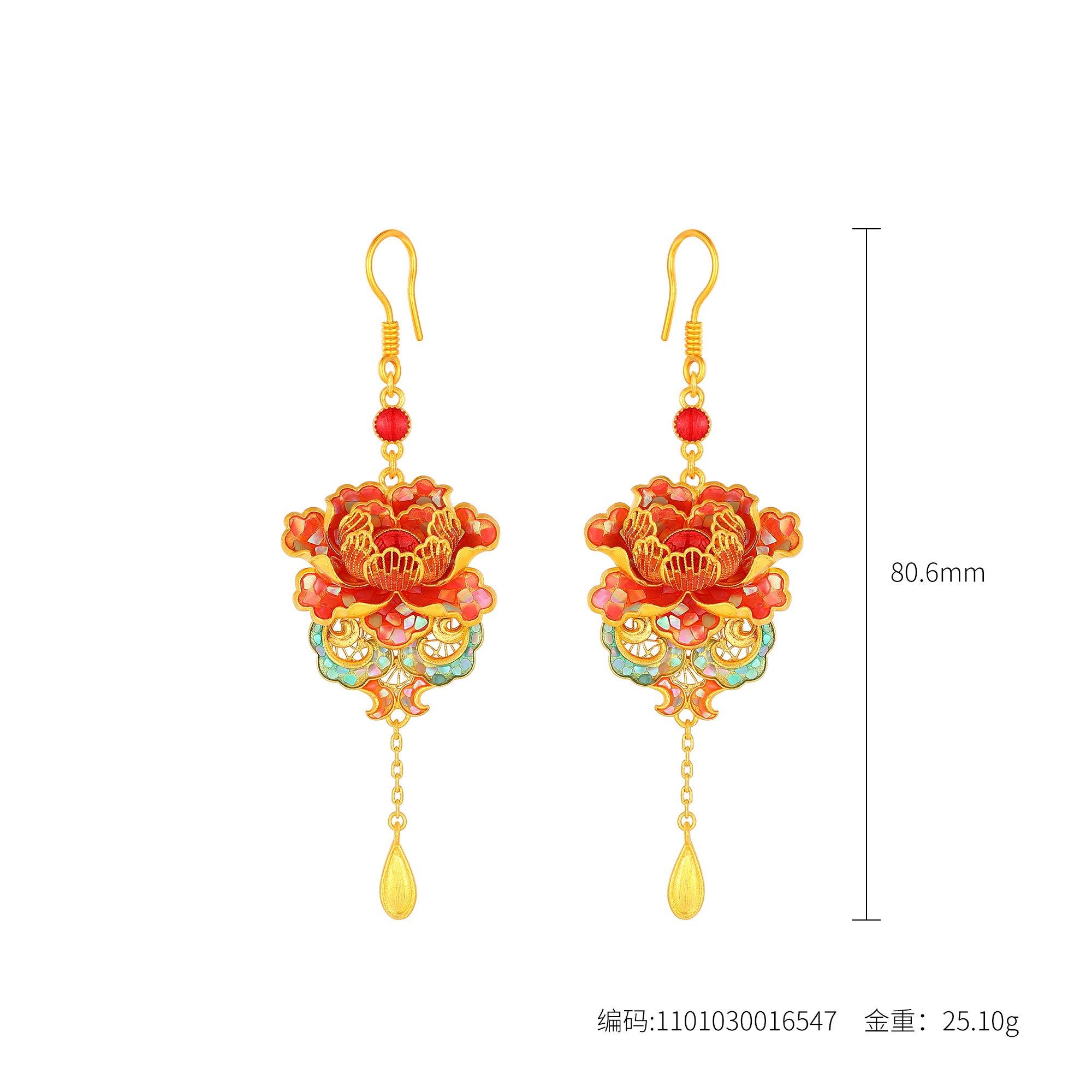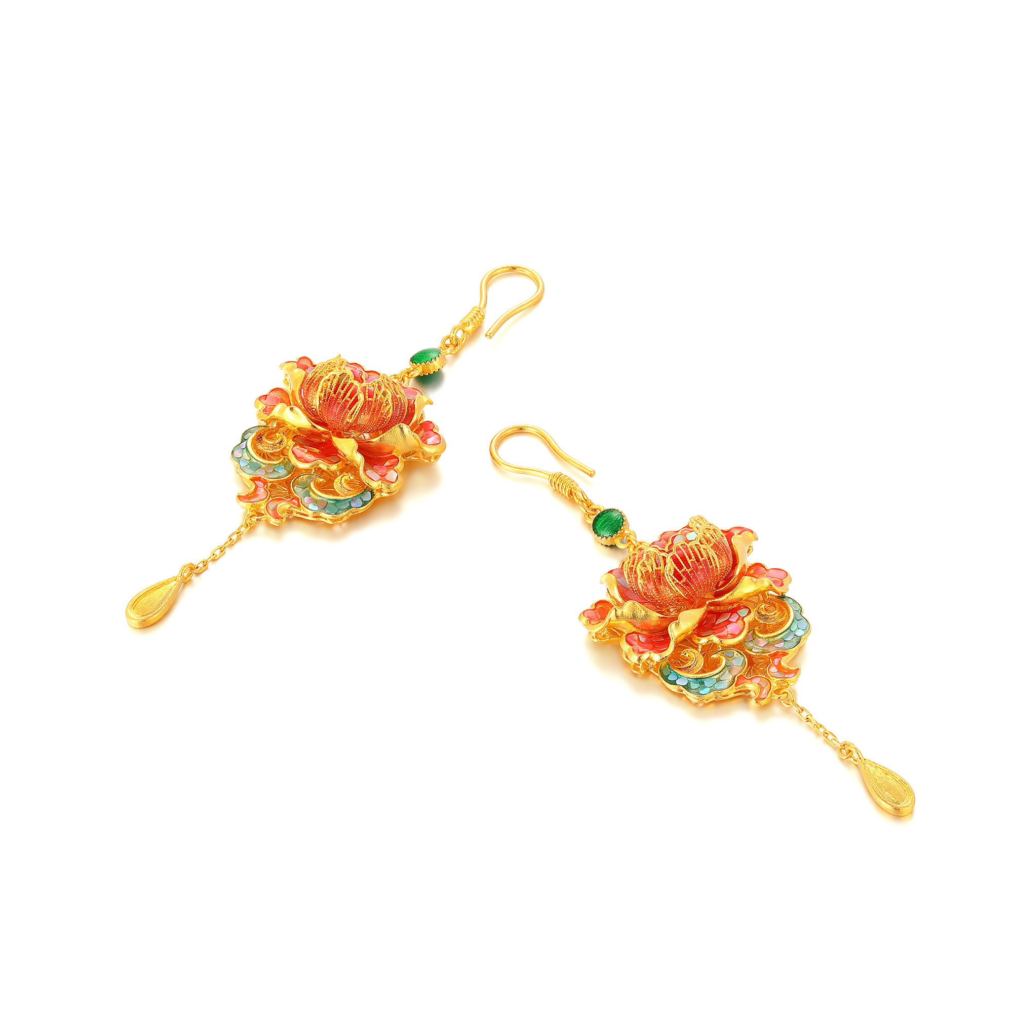 古法奢华典雅点螺鎏彩盛世牡丹耳钩