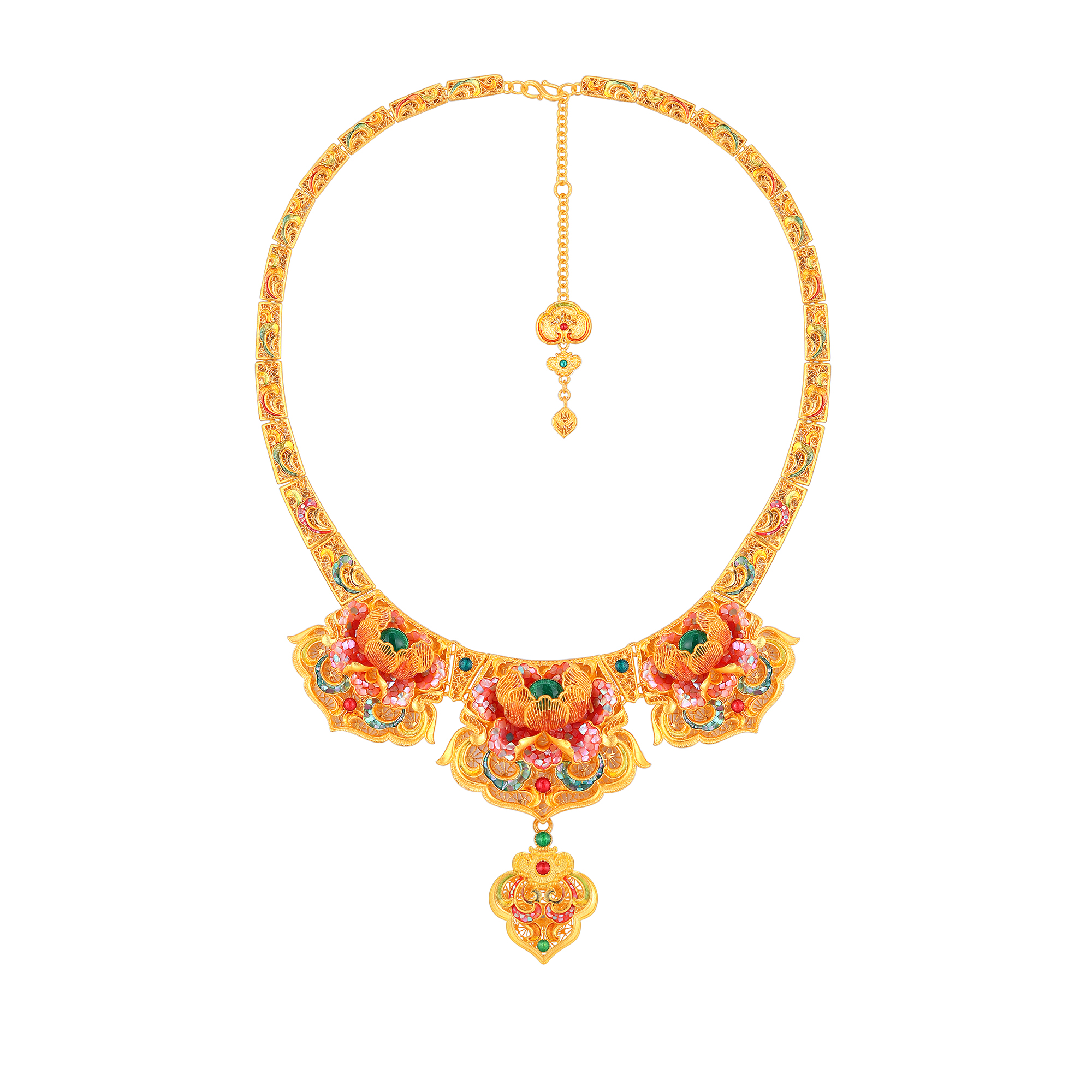 古法经典锁包花卉牡丹富贵满堂螺钿项圈