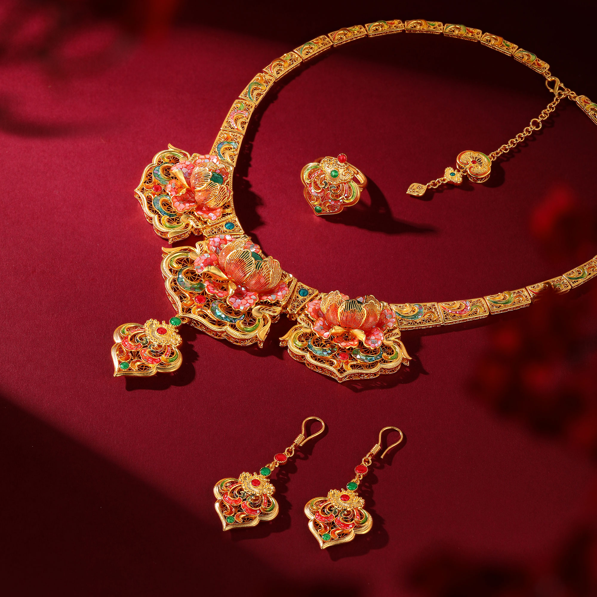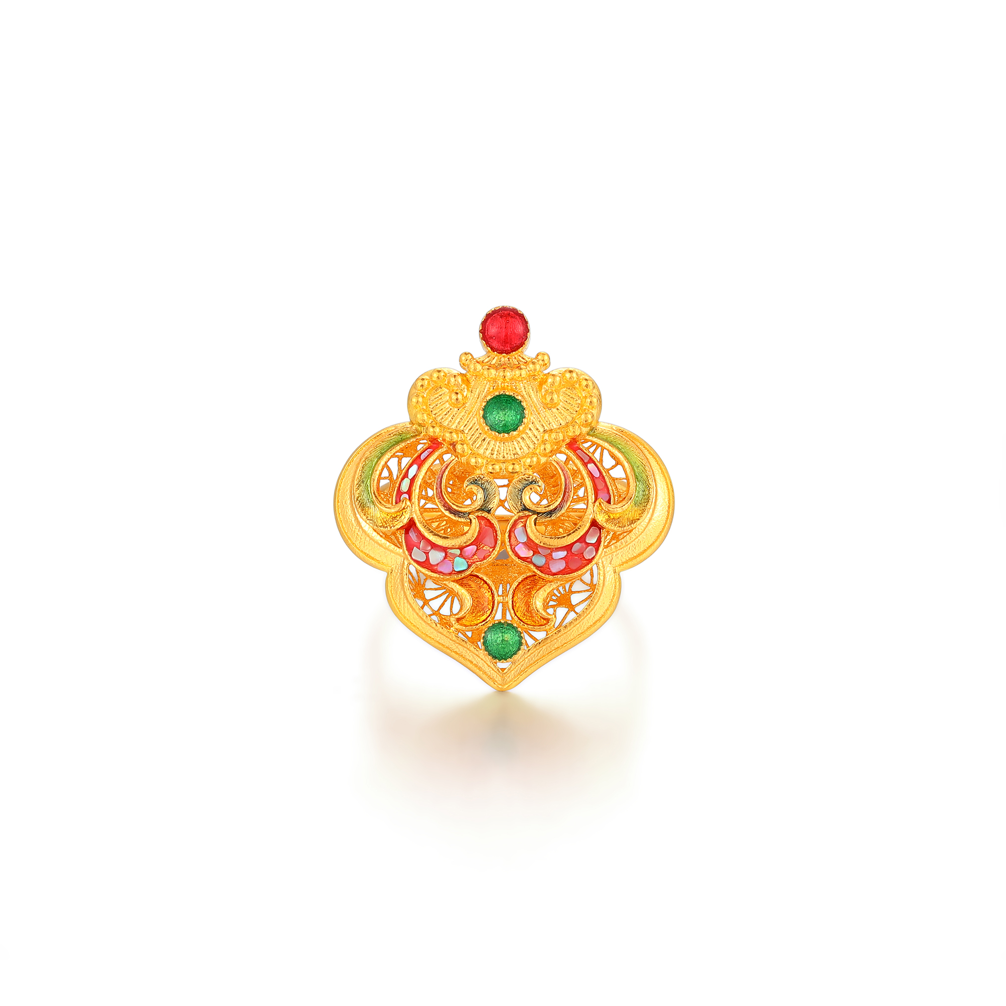 古法经典婚庆几何四合如意鎏彩螺钿戒指