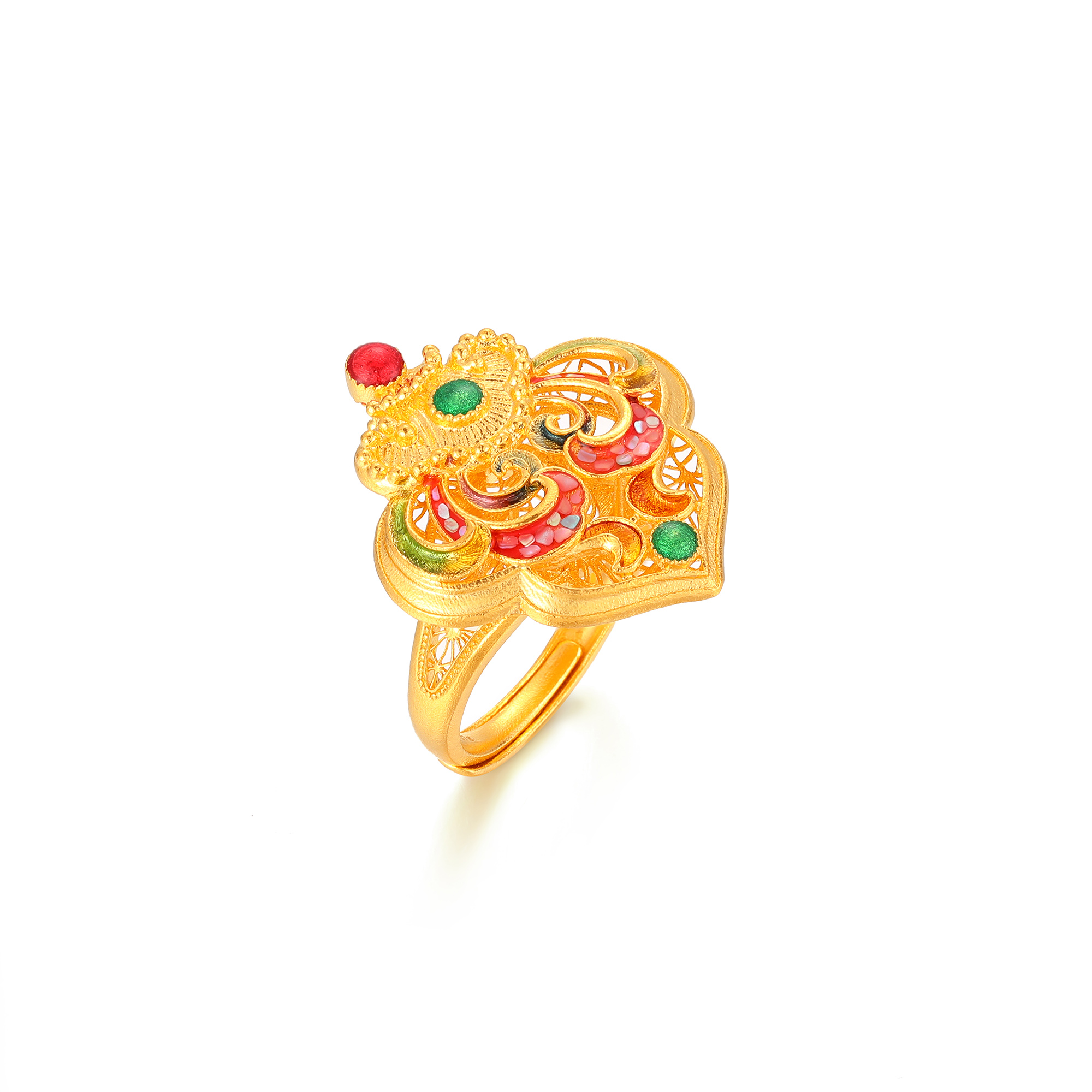 >>古法奢华高级鎏彩点螺富丽华荣戒指