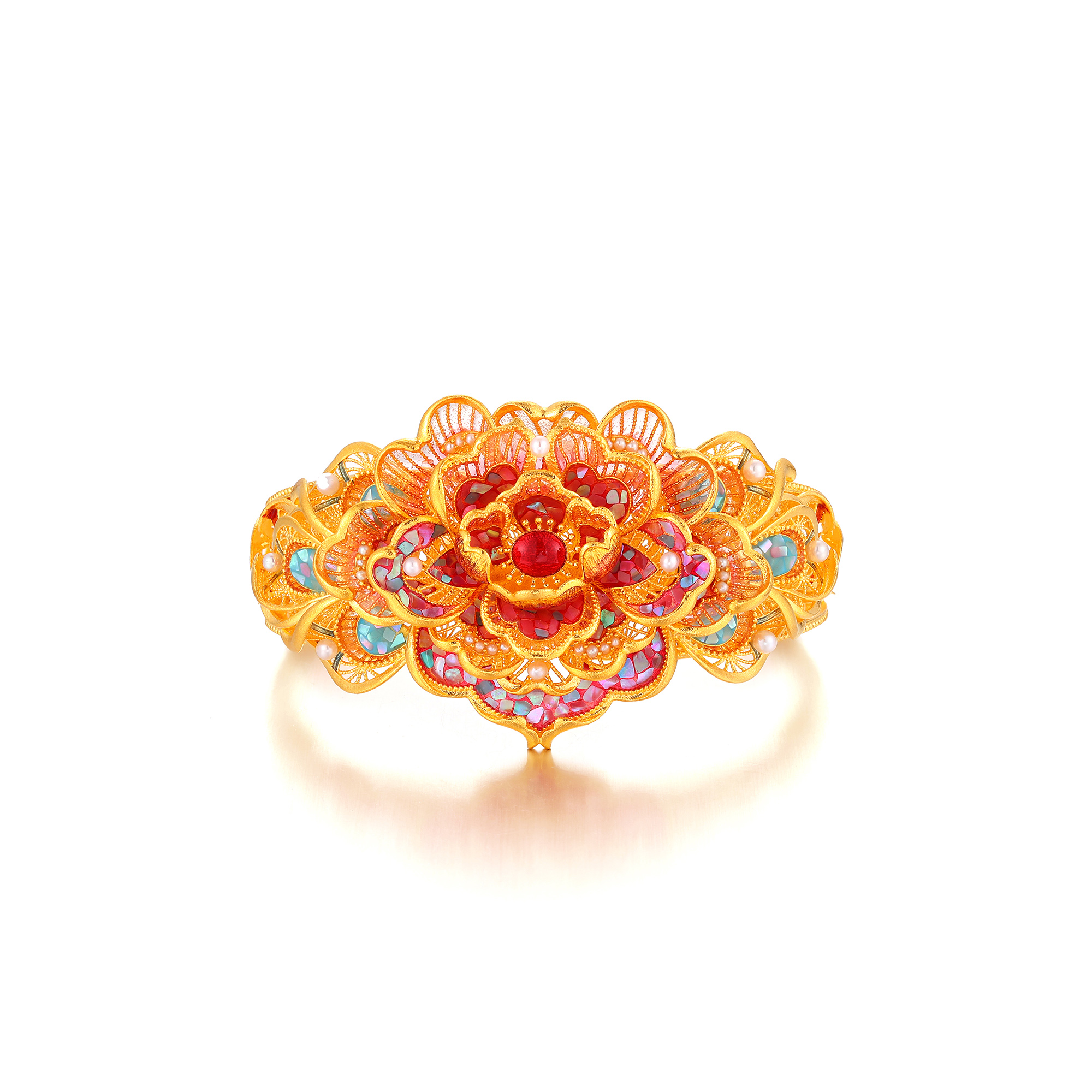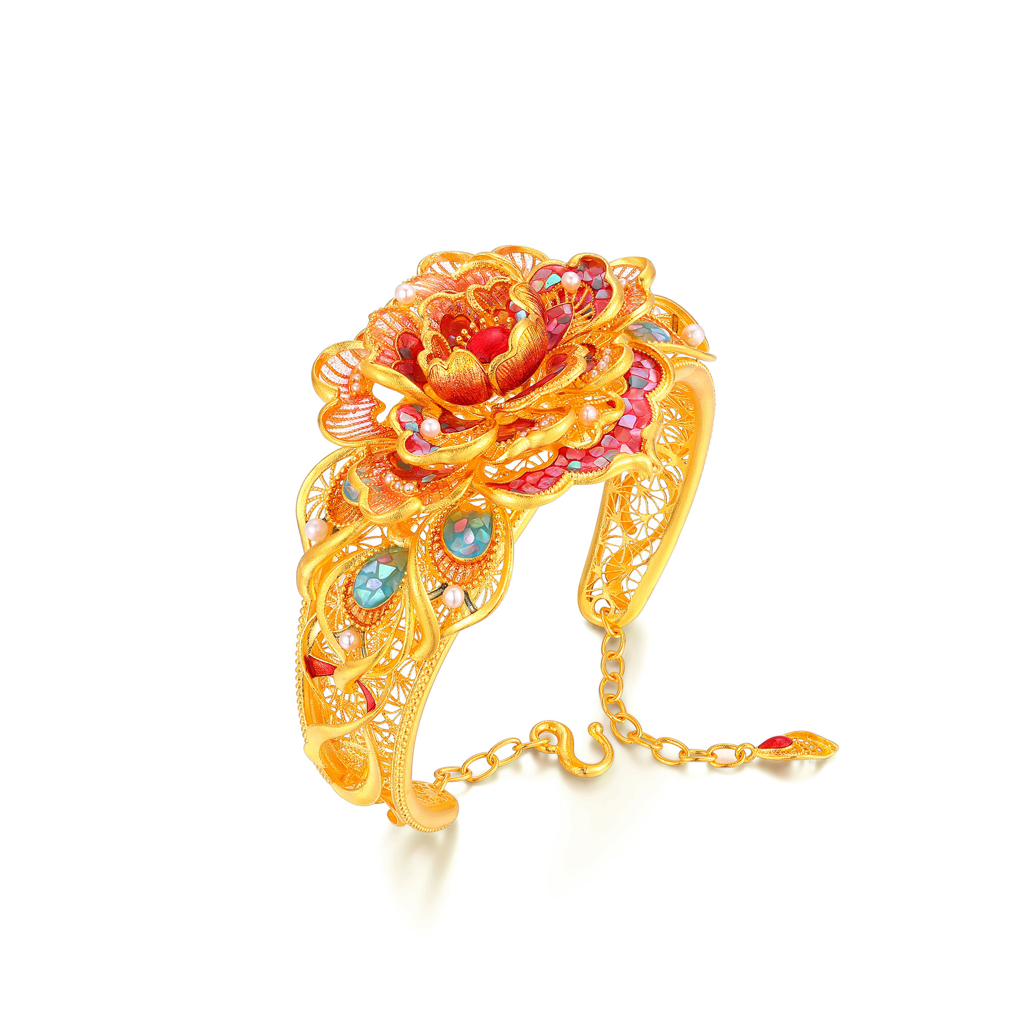 >>古法奢华绚丽点螺鎏彩国色凤华珍珠镯链
