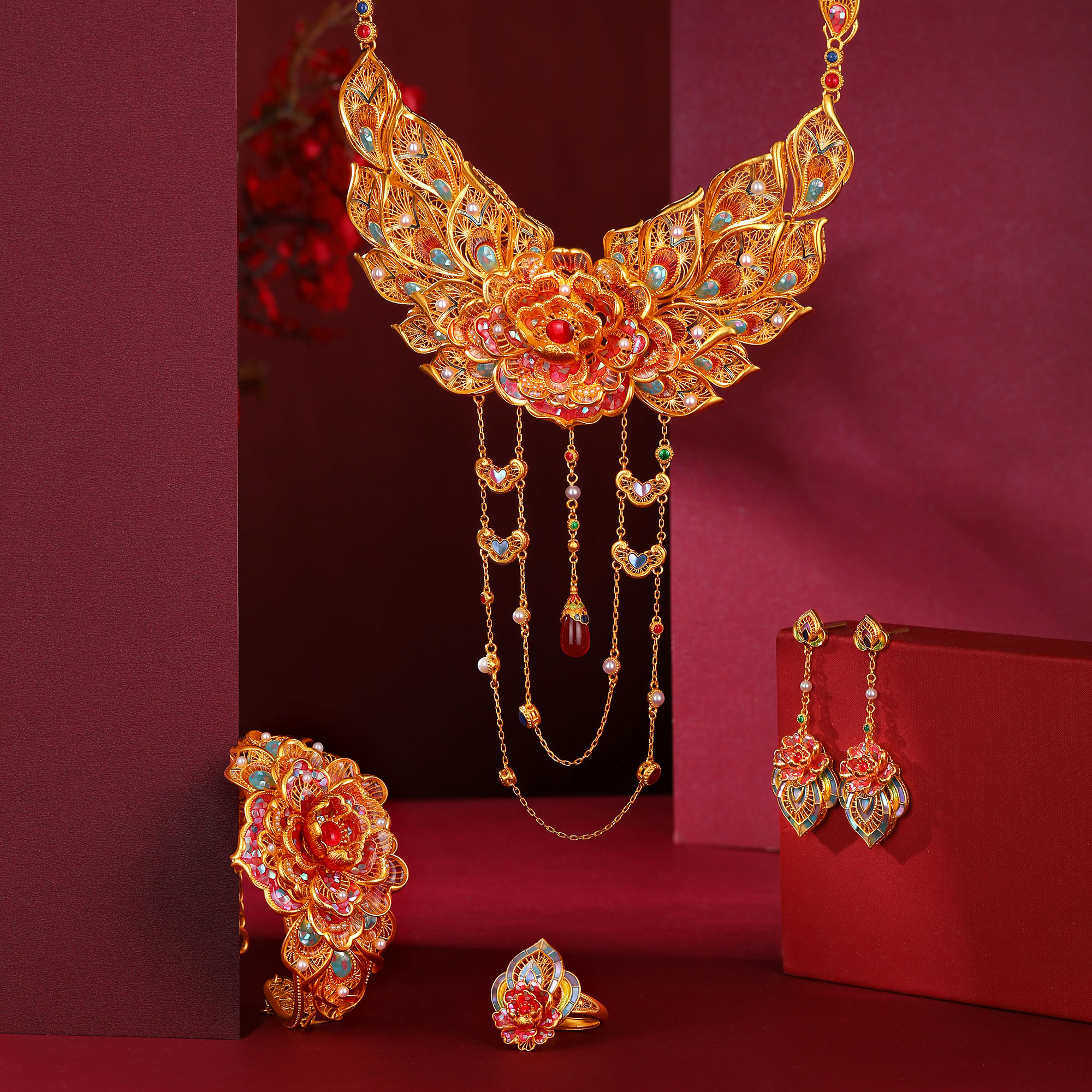 古法奢华绚丽点螺鎏彩国色凤华珍珠镯链