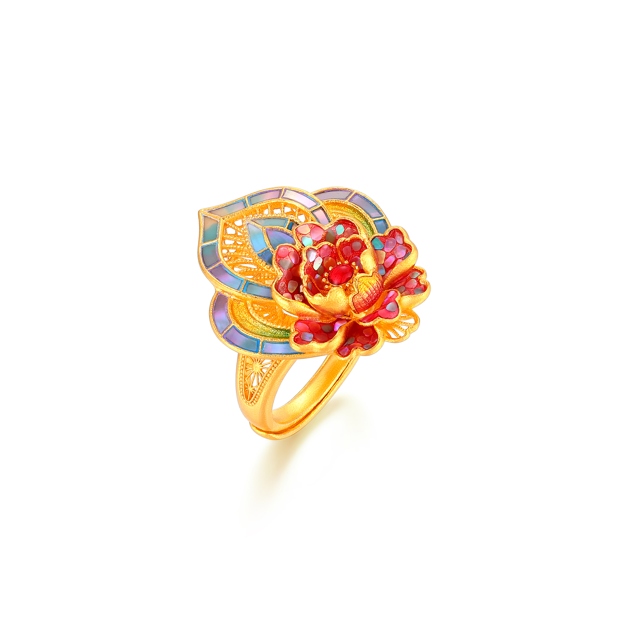 >>古法奢华绚丽点螺鎏彩国色凤华戒指