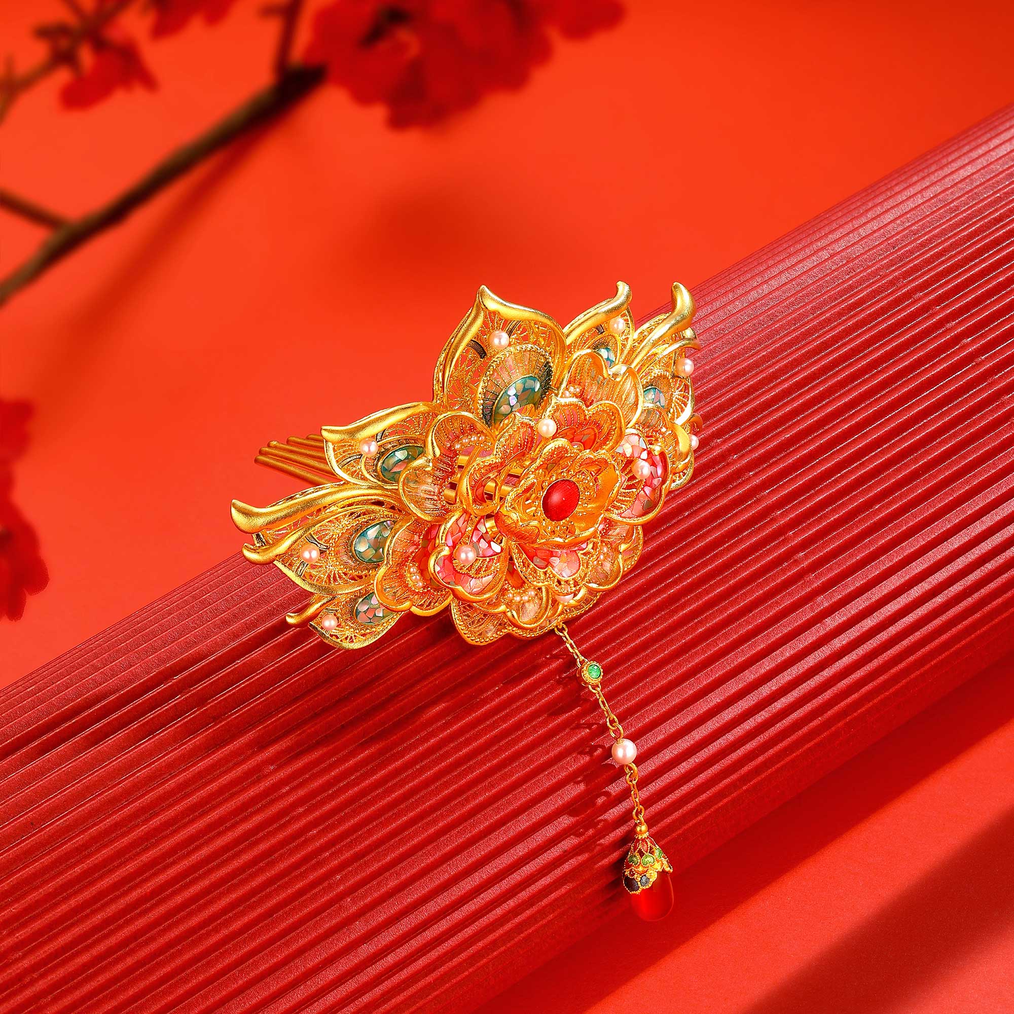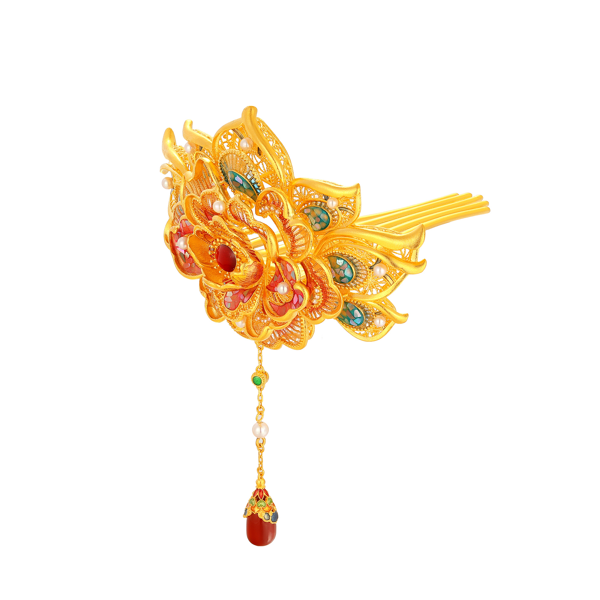 >>古法高级臻宝奢华点螺华韵牡丹珍珠玛瑙凤冠