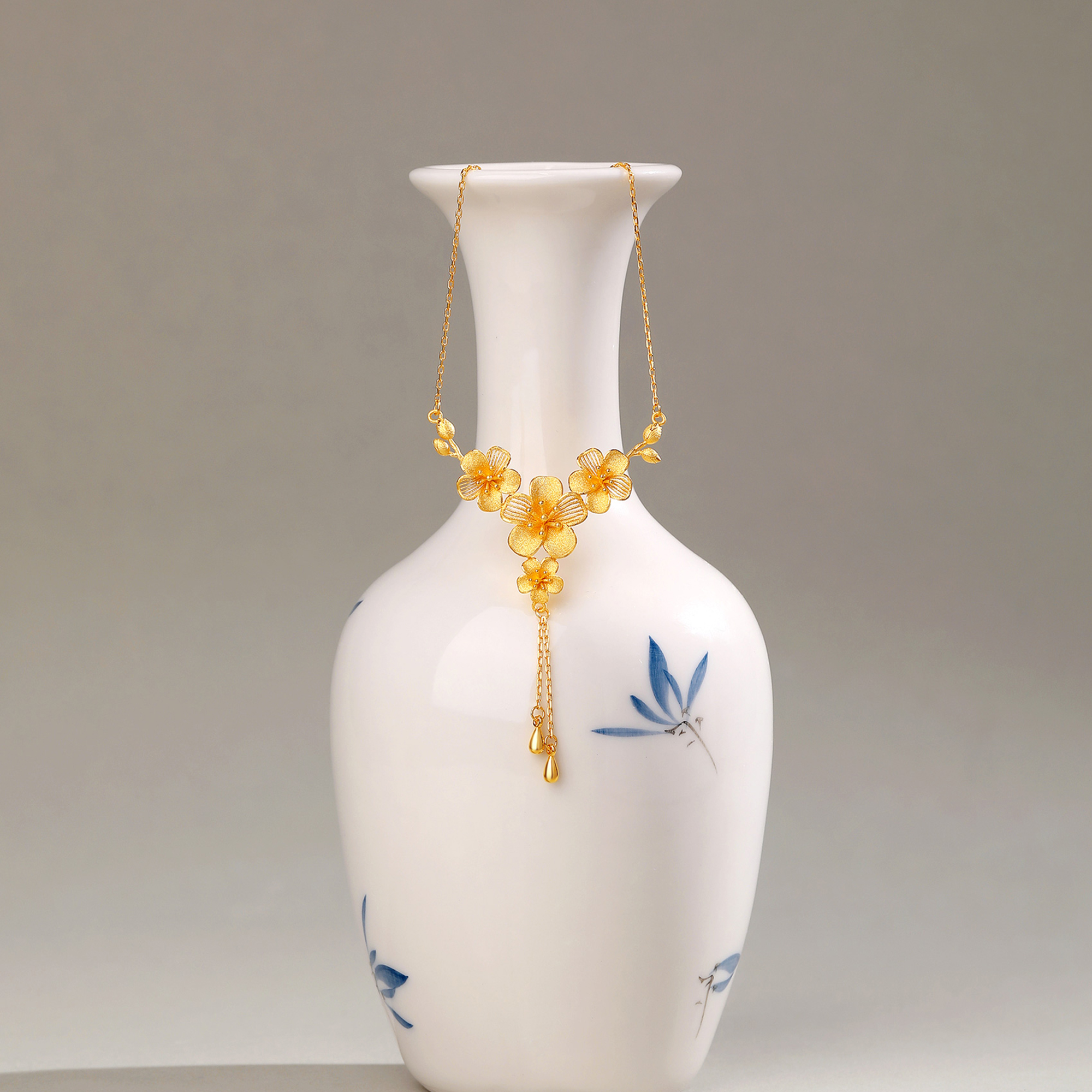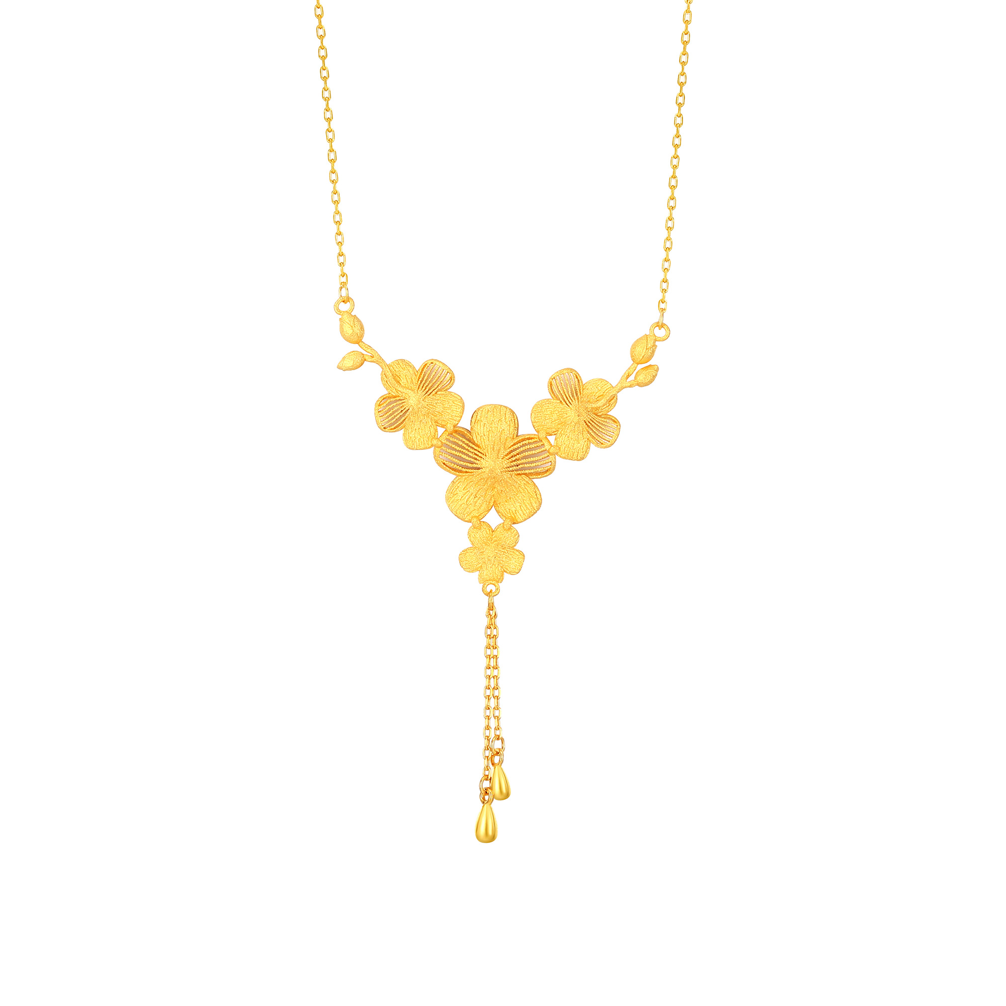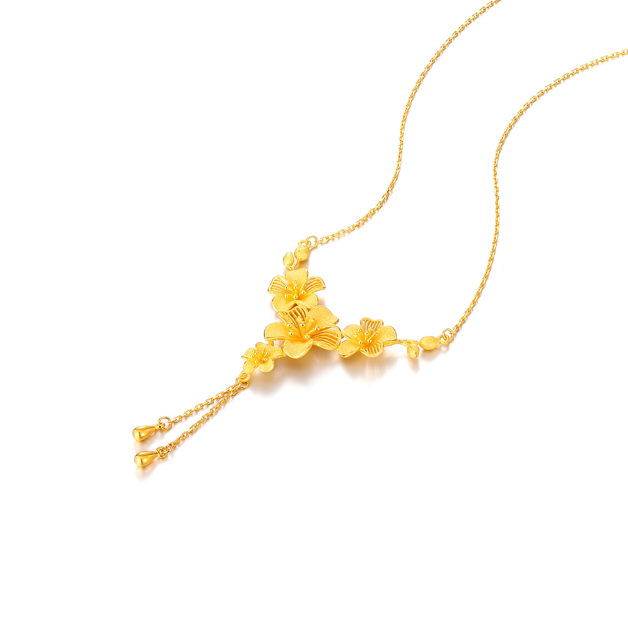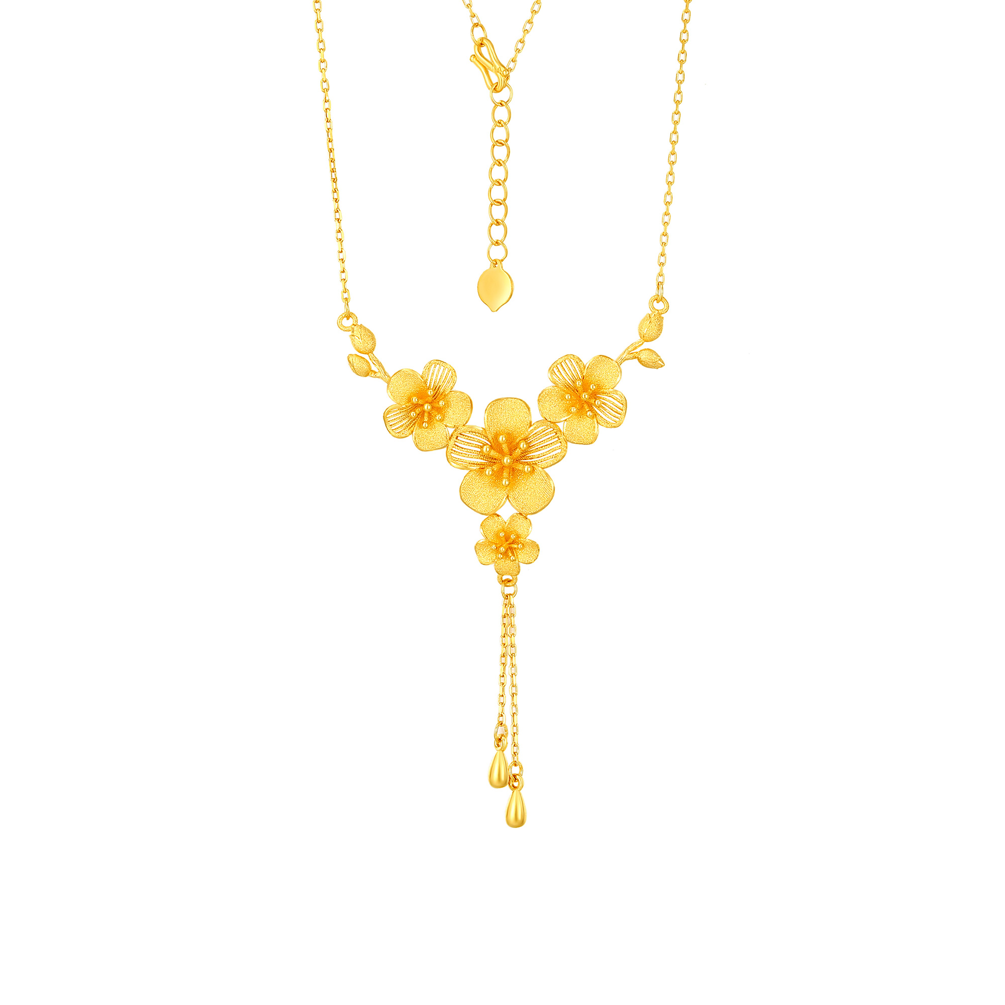 >>足金精品浪漫娇艳镂空梅花流苏套链