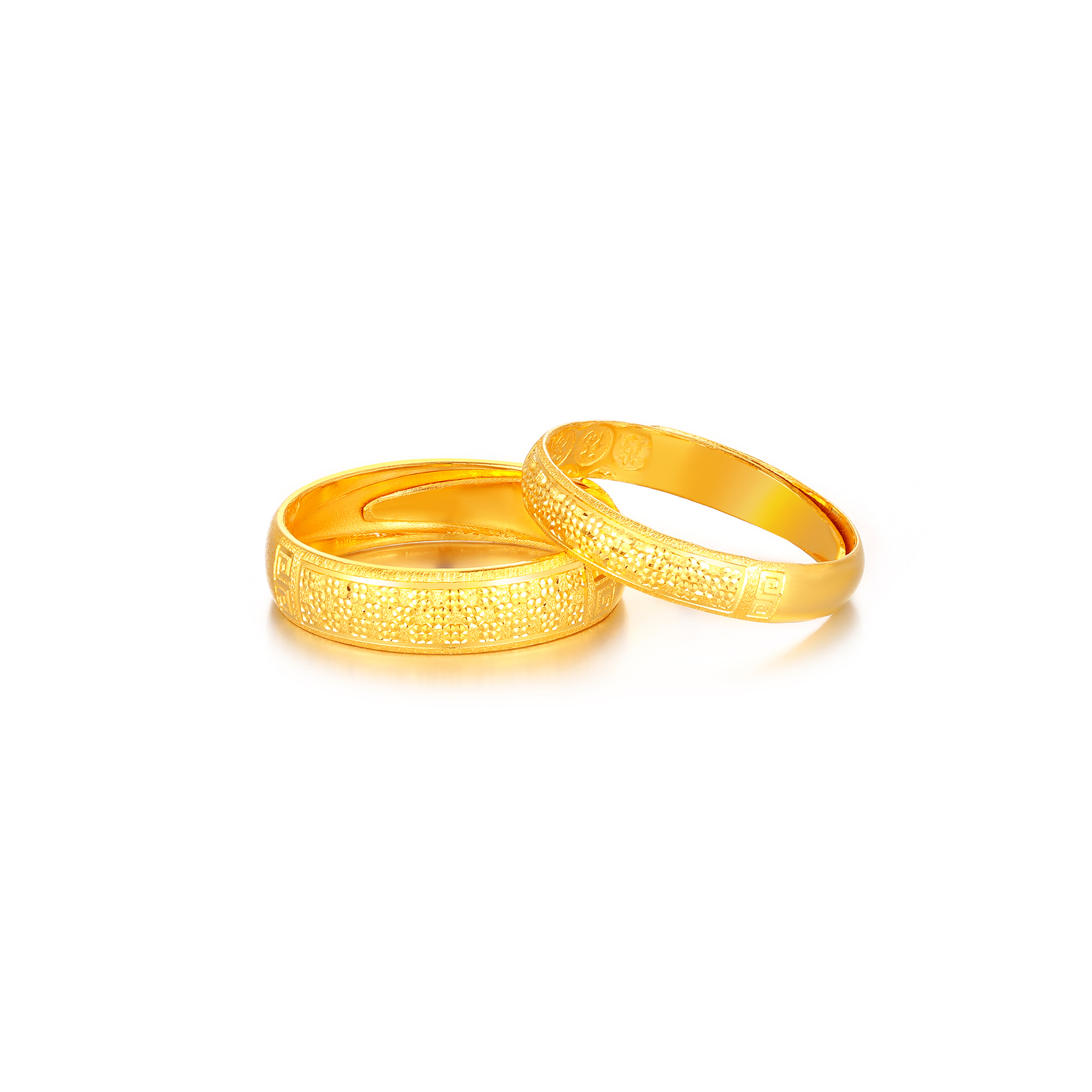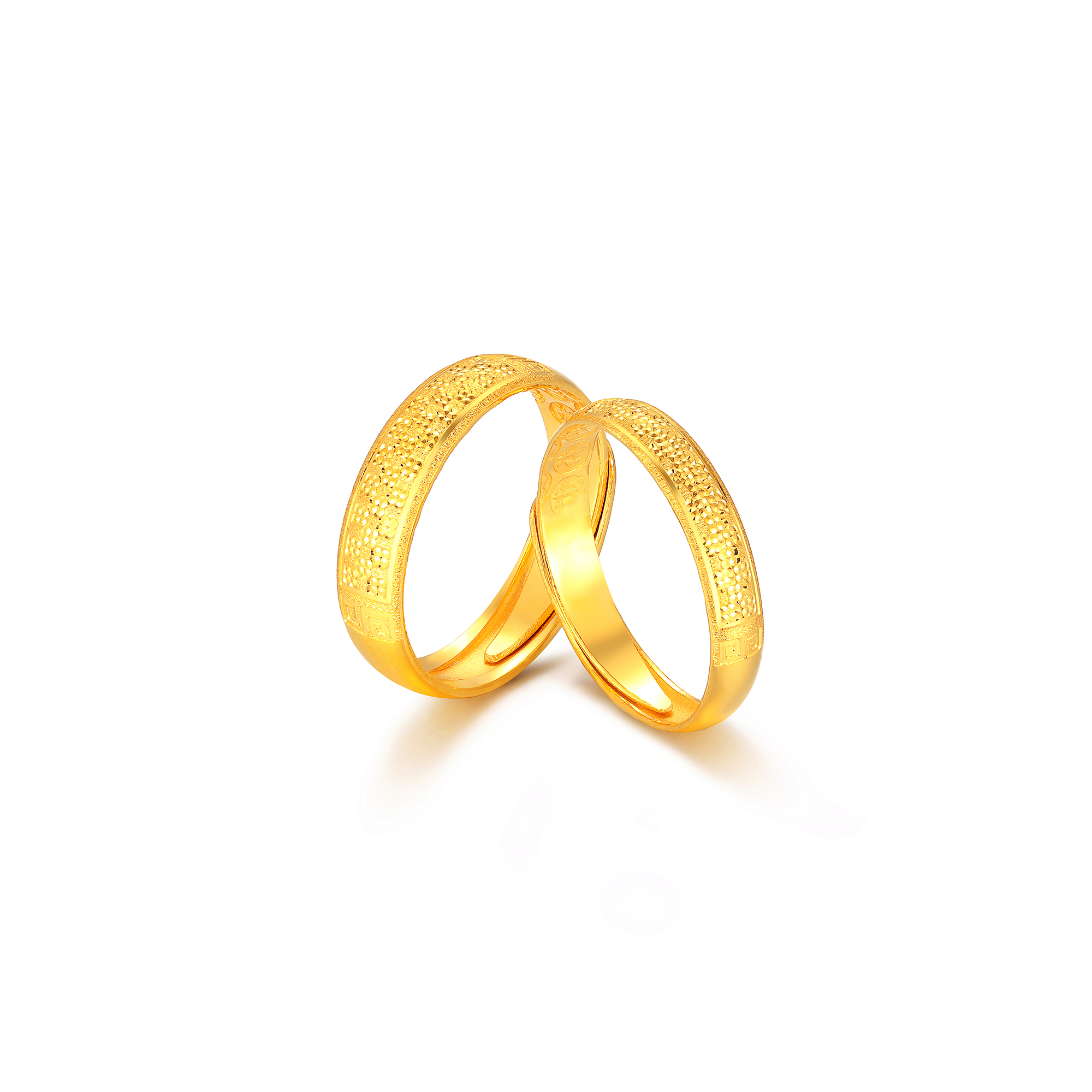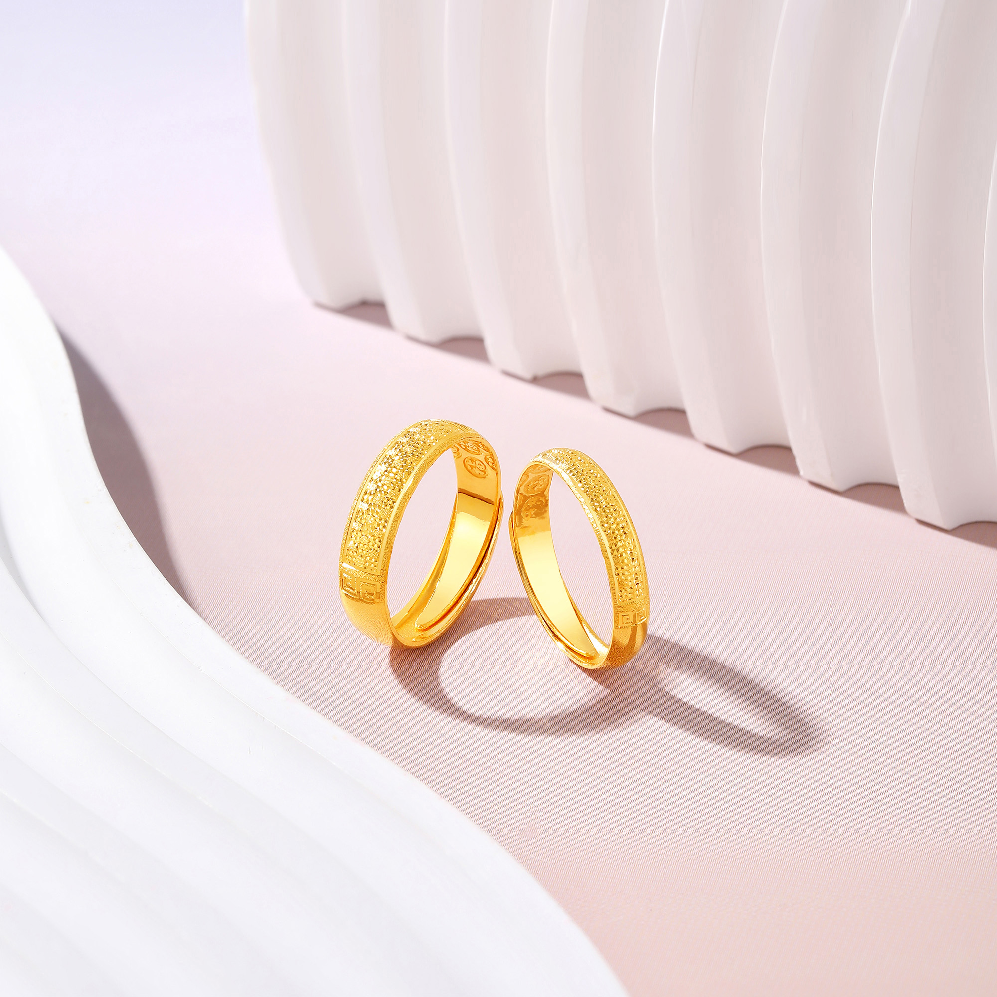 足金精品福字底纹磨砂爆闪仿钻点情侣对戒