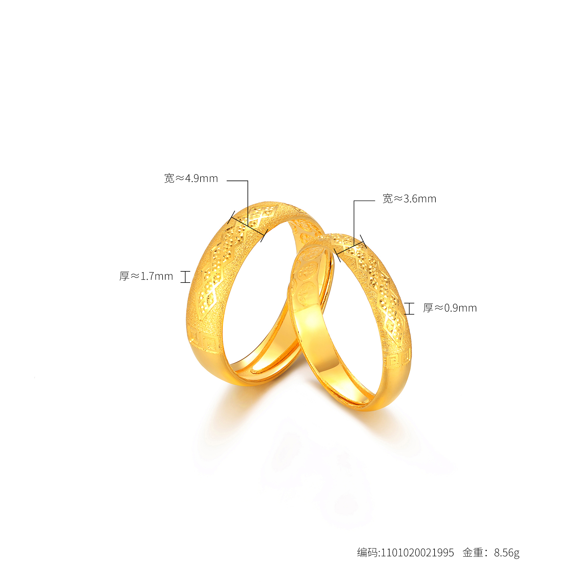 足金方圆几何对戒