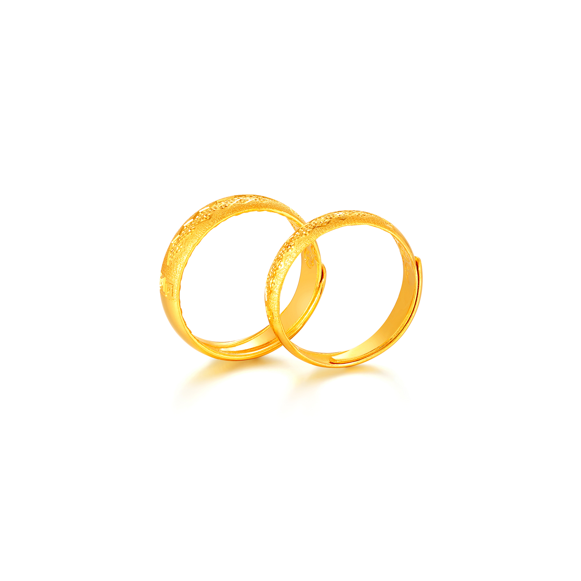足金精品福字底纹磨砂爆闪仿钻点情侣对戒