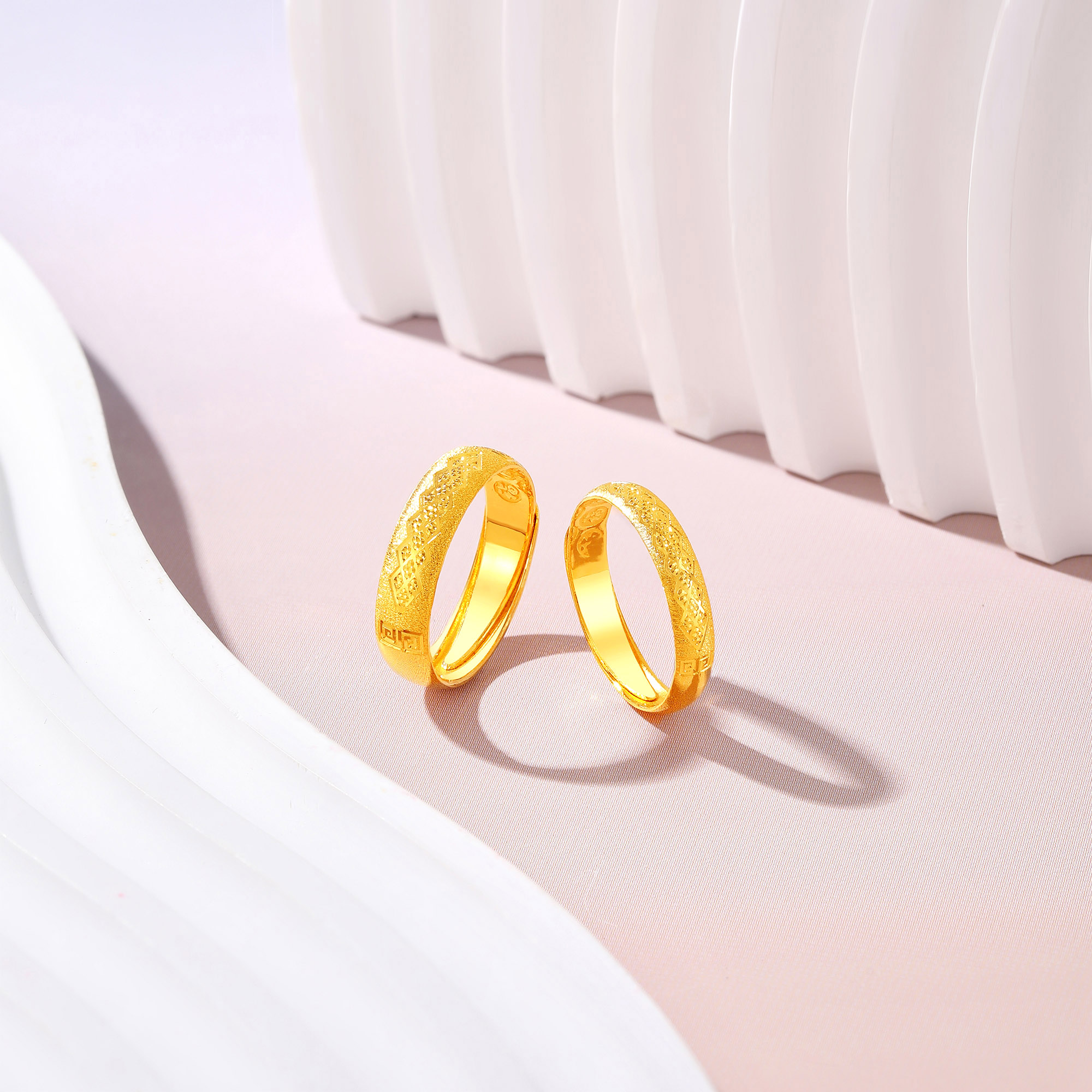 足金鳞片纹几何对戒