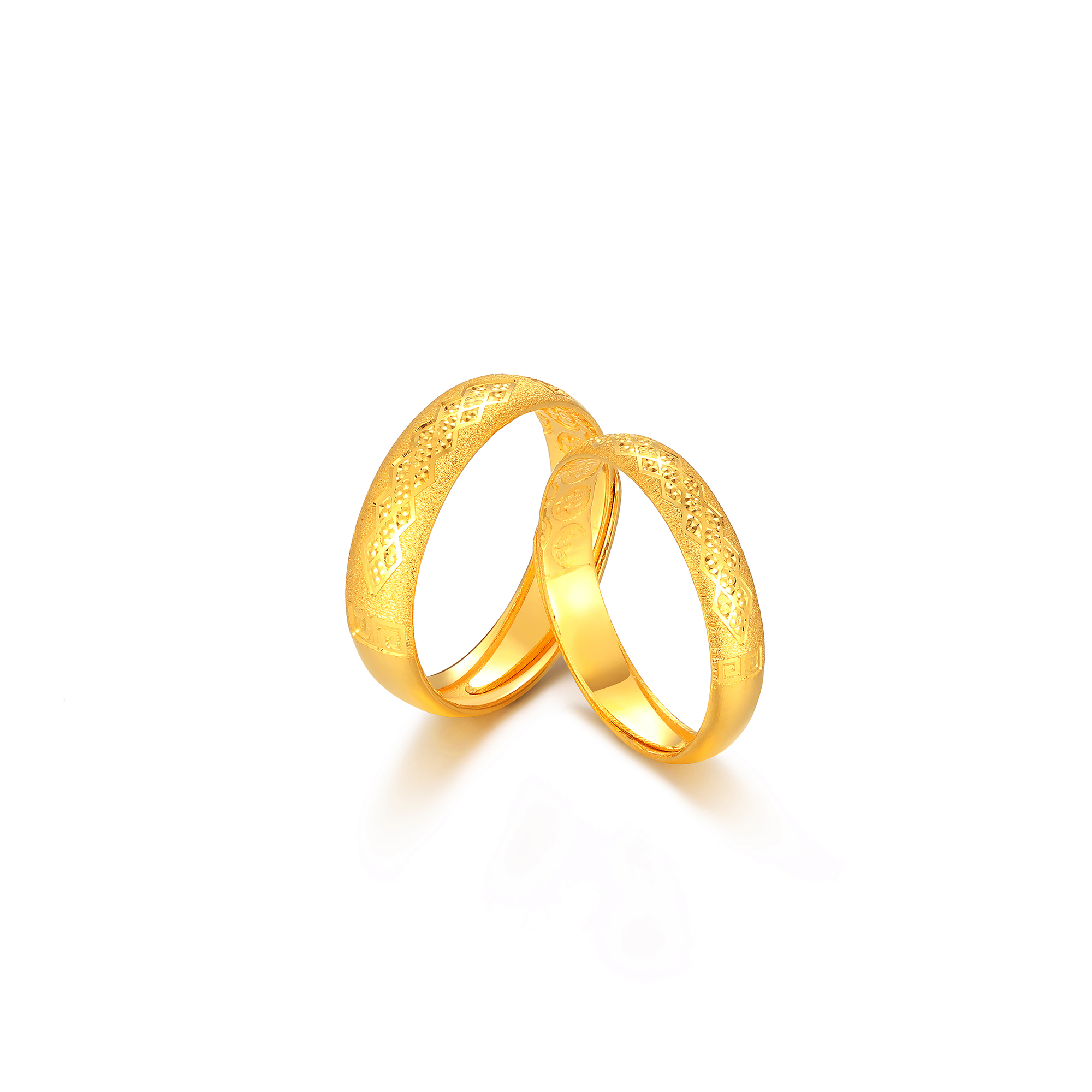 >>足金精品福字底纹磨砂爆闪仿钻点情侣对戒