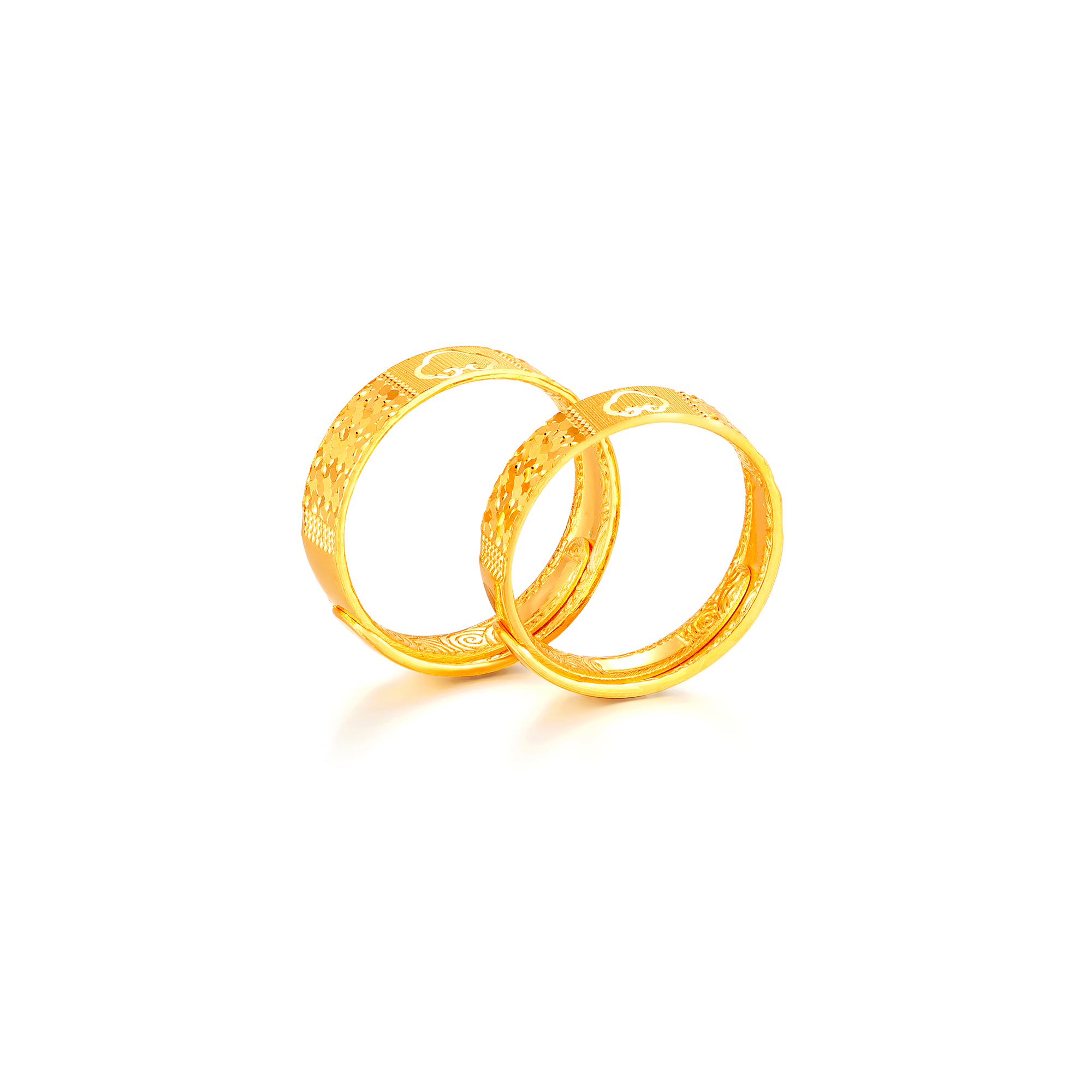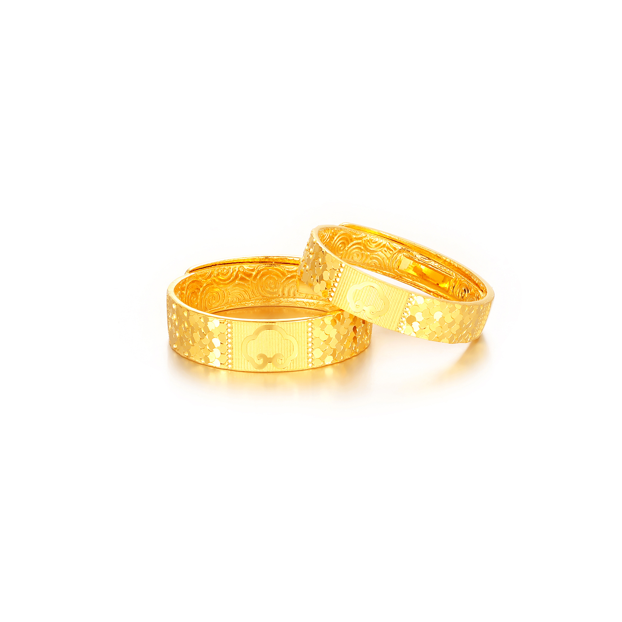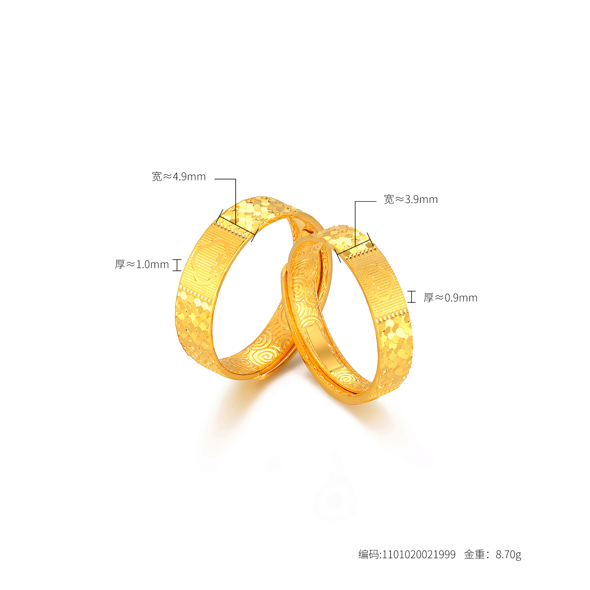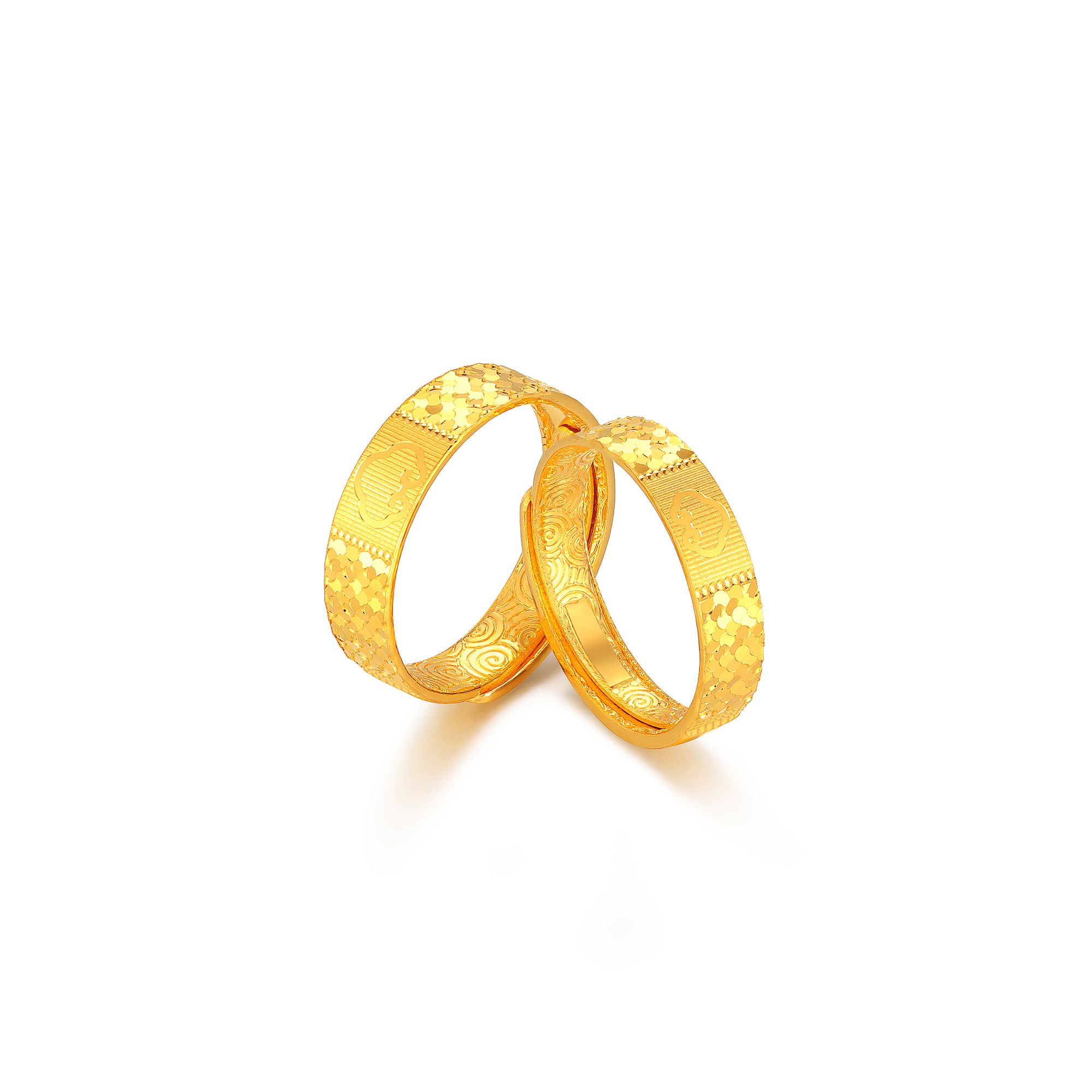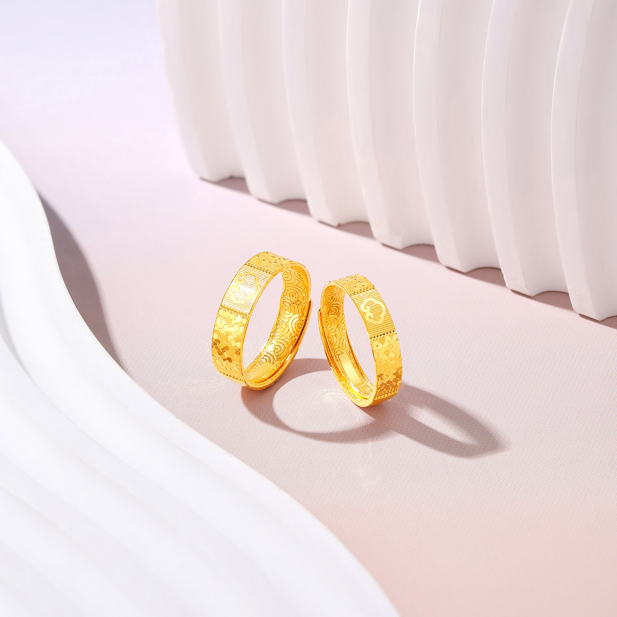 >>足金精品回纹底纹碎碎金如意情侣对戒