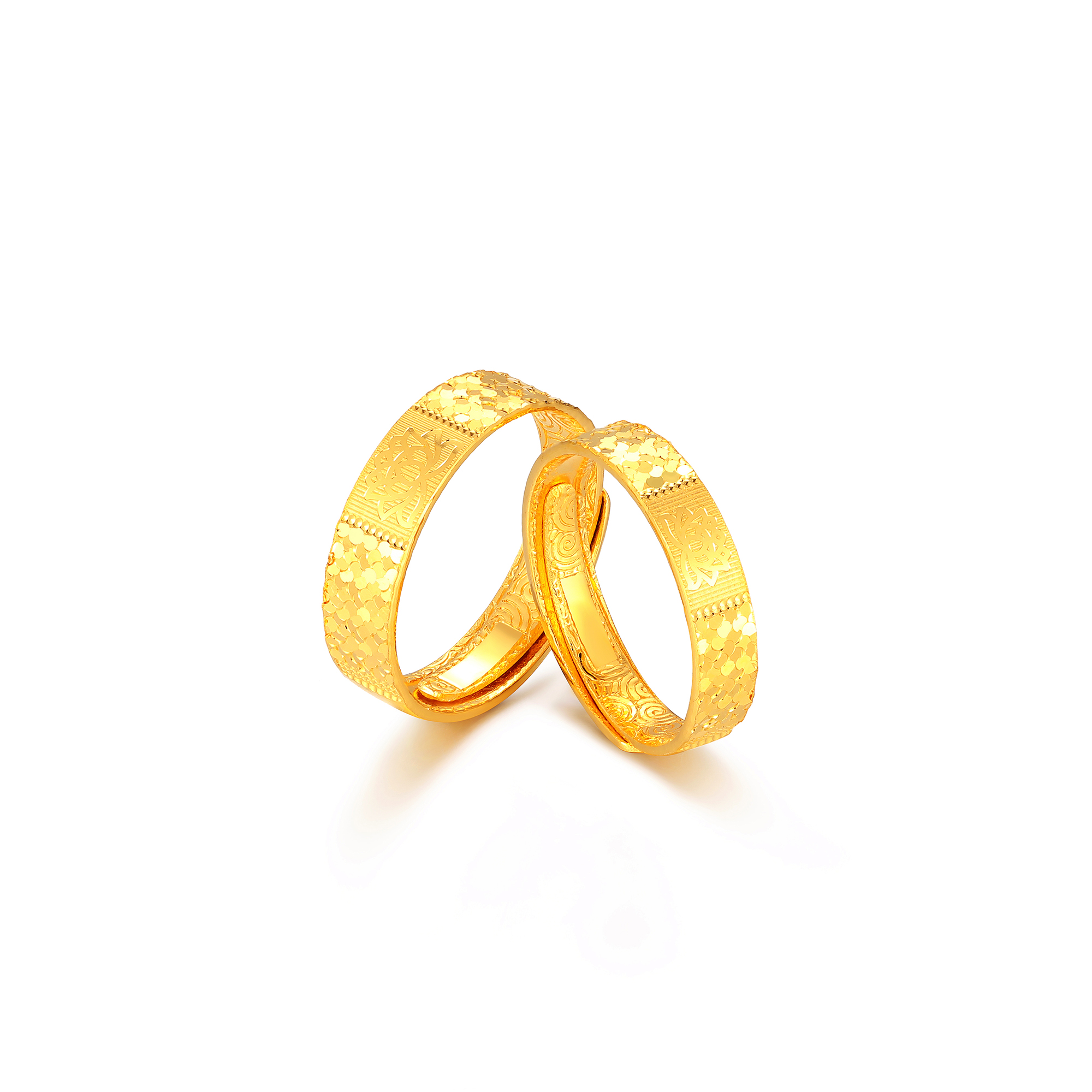 足金精品回纹底纹碎碎金莲花情侣对戒