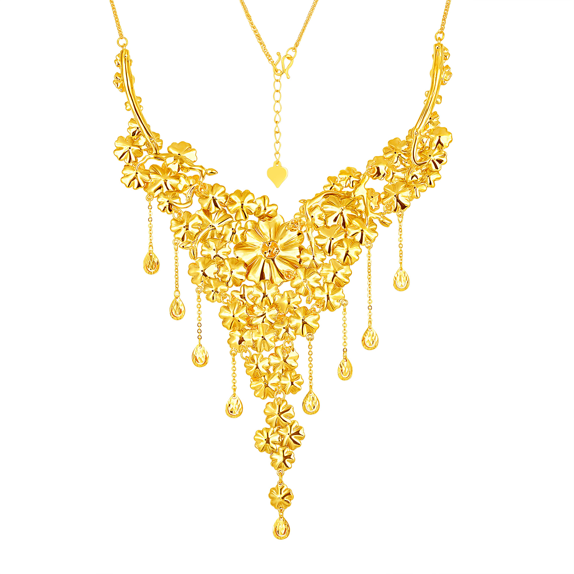 无氰硬金花卉繁花流苏水滴婚庆花型套链