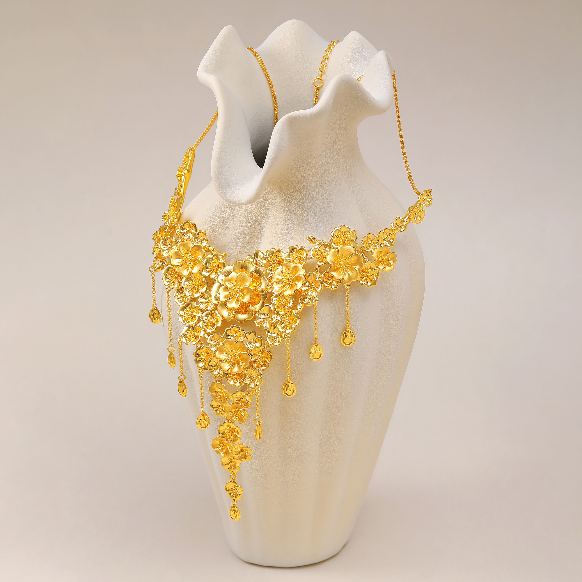>>无氰硬金花卉繁花流苏水滴婚庆花型套链