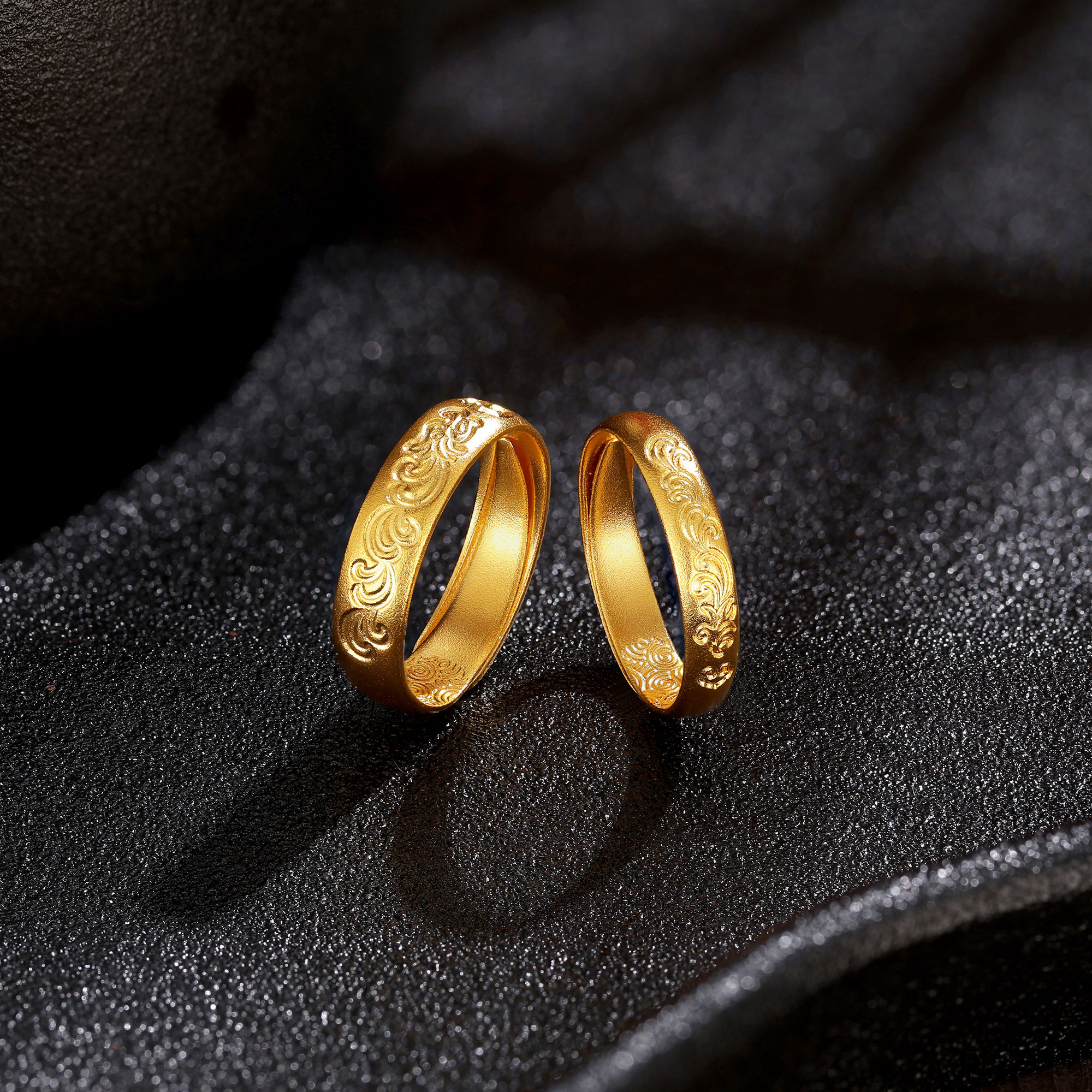 古法经典护佑龙凤开口情侣对戒