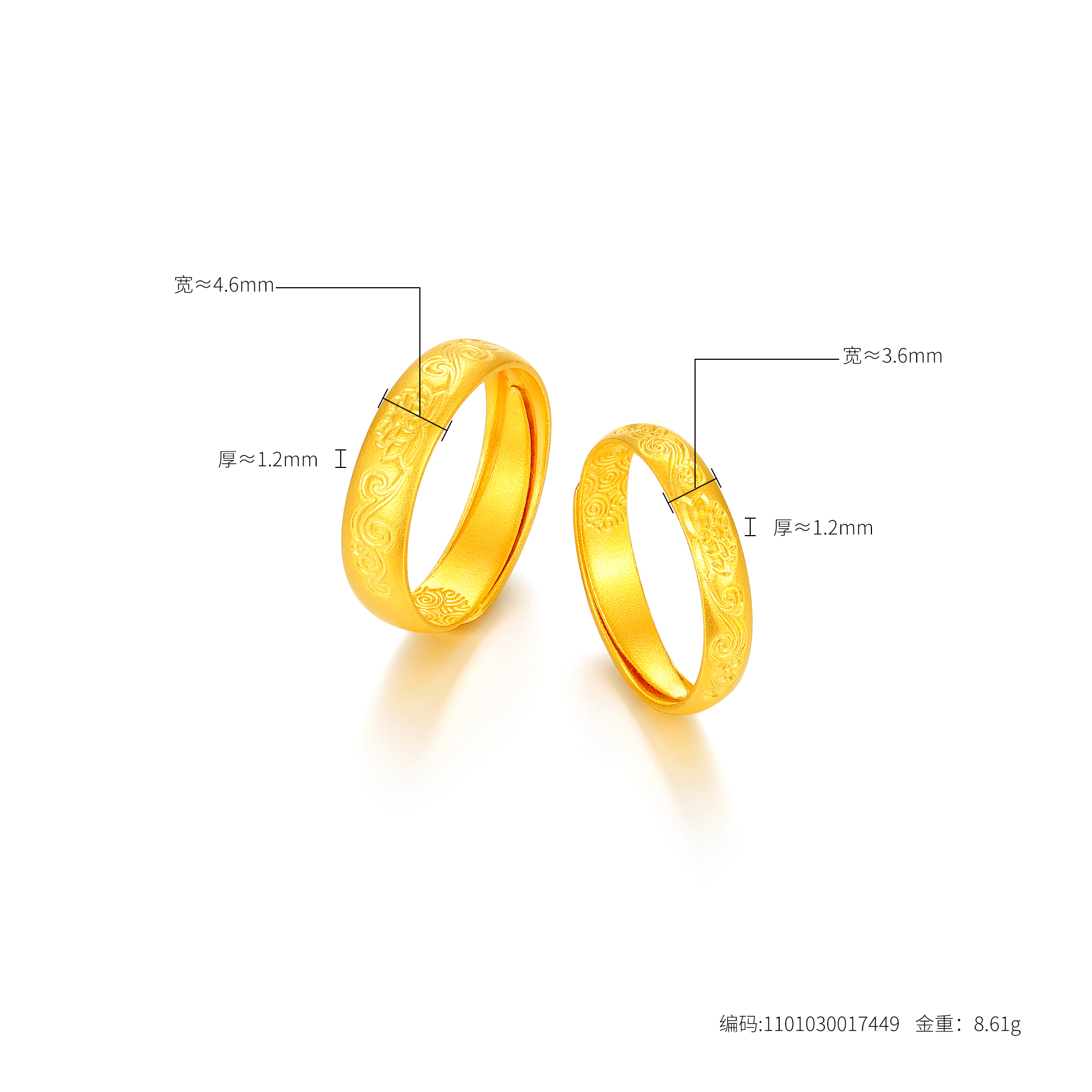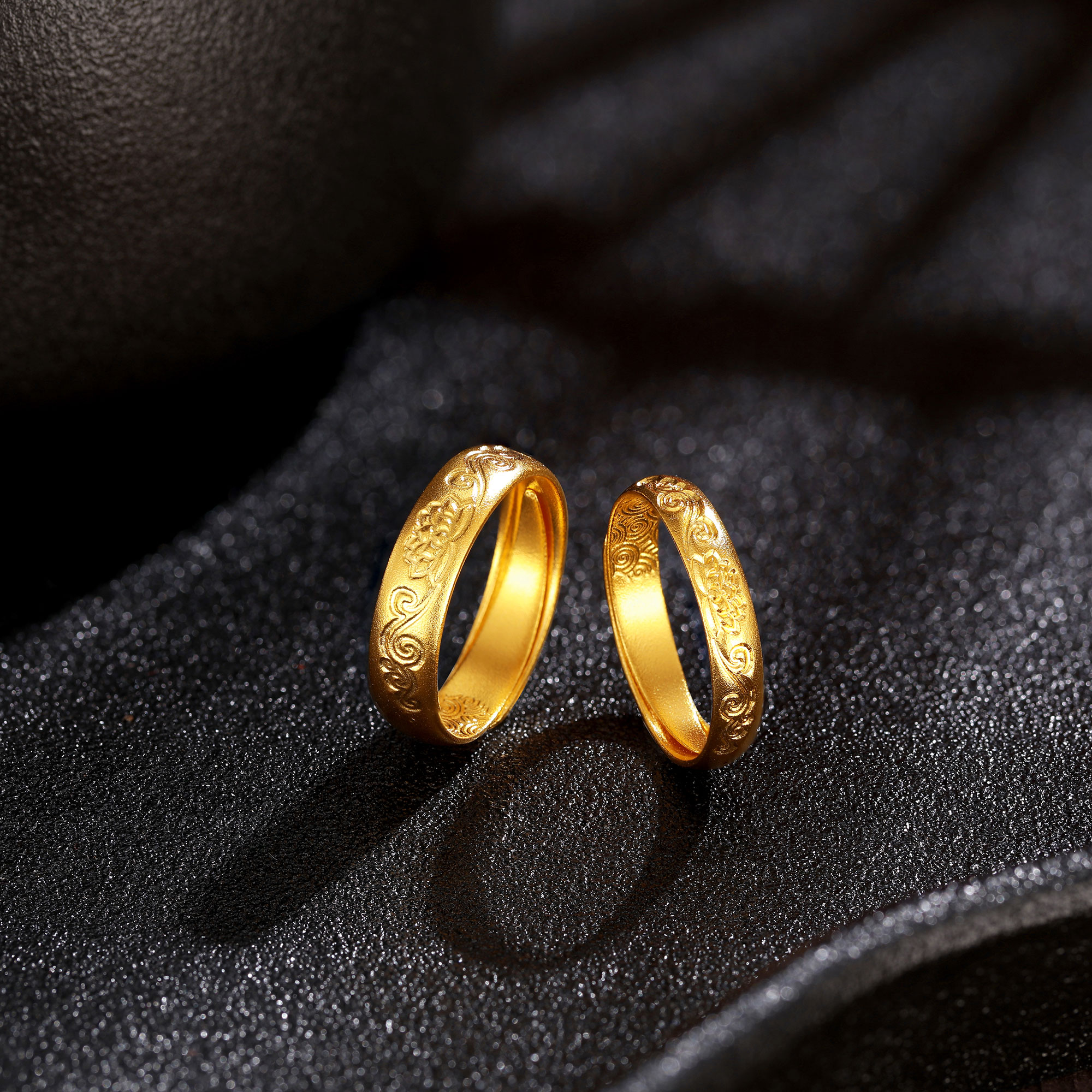 >>古法经典护佑莲花祥云开口情侣对戒