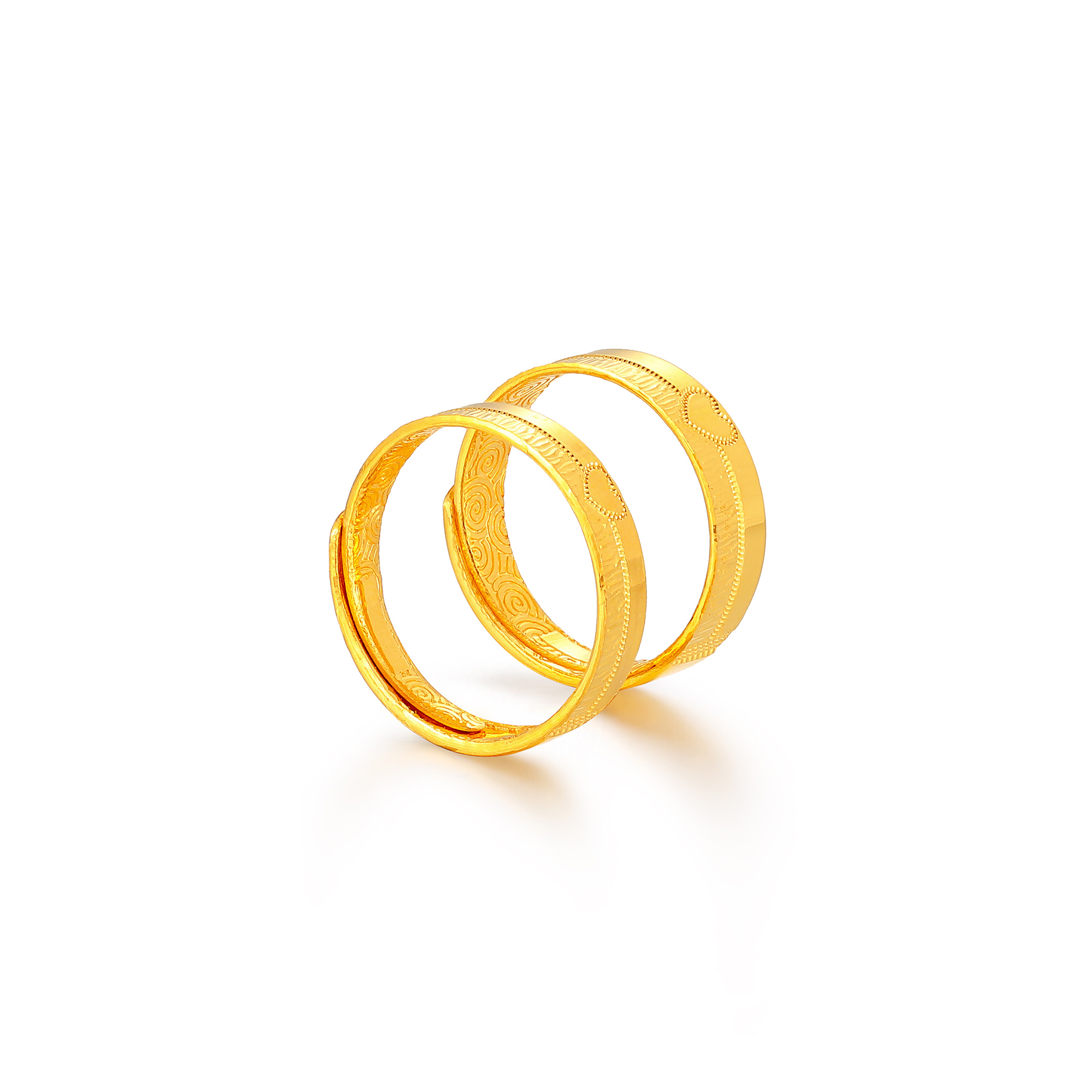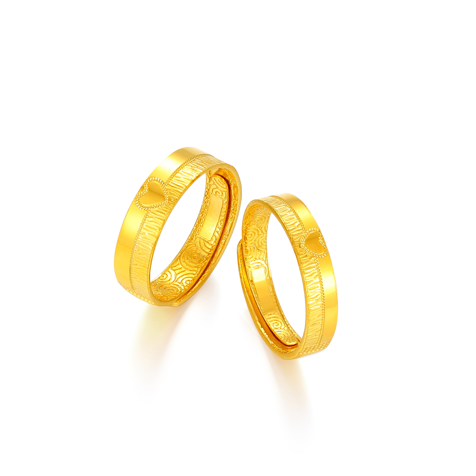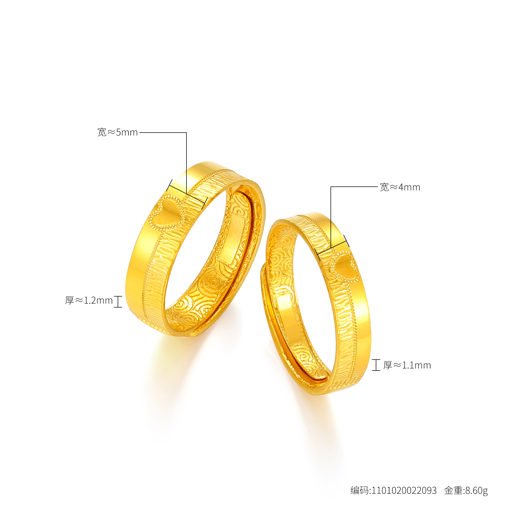 >>足金精品心形仿钻点肌理纹情侣对戒