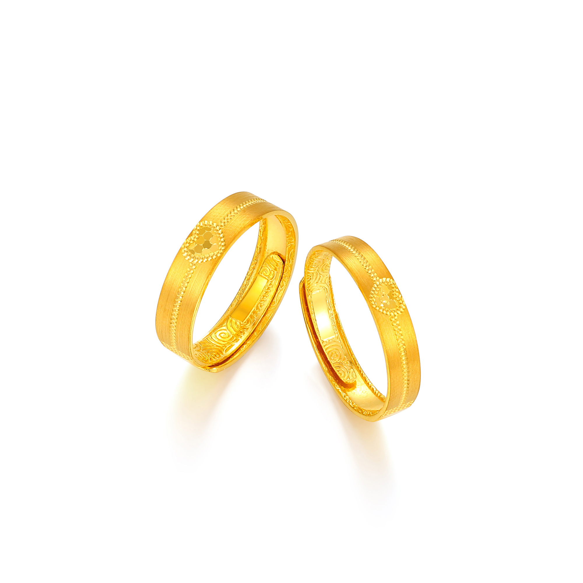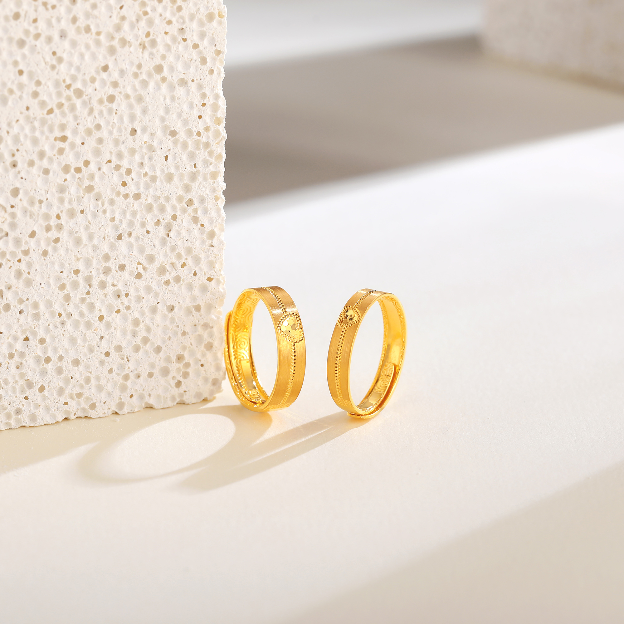 >>足金精品心形仿钻点鳞纹情侣对戒