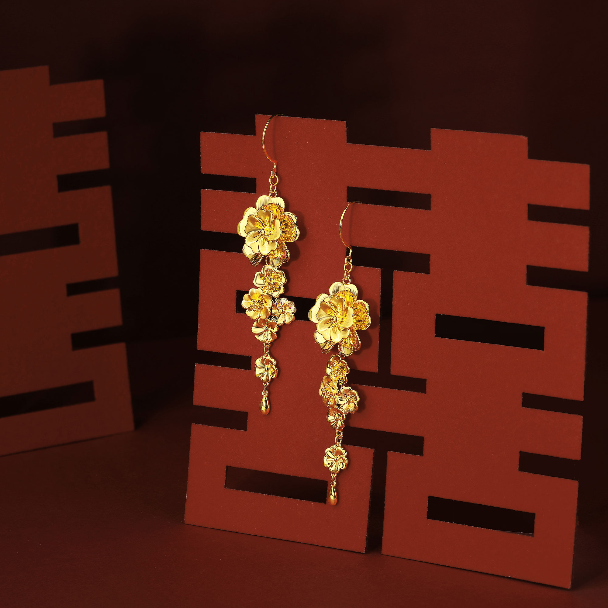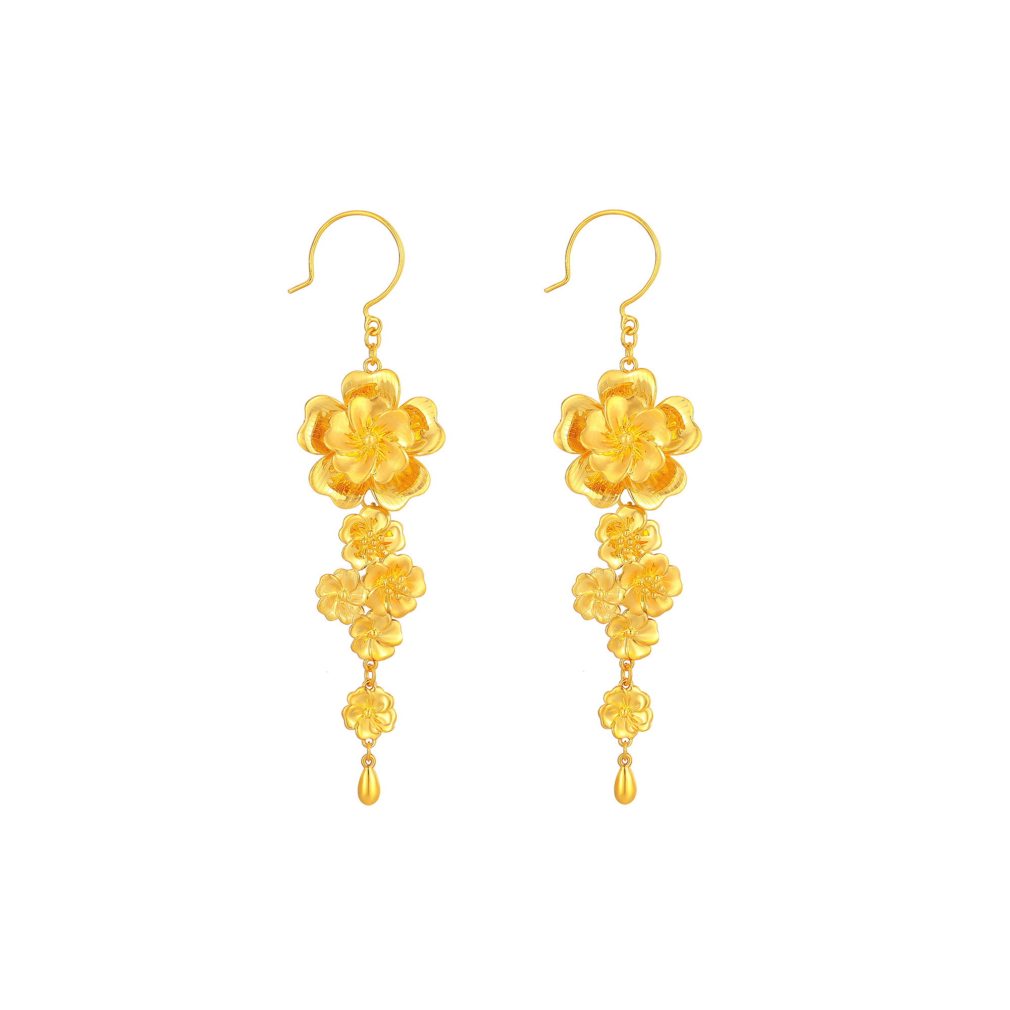 无氰硬金绚丽典雅花卉婚庆耳饰耳钩