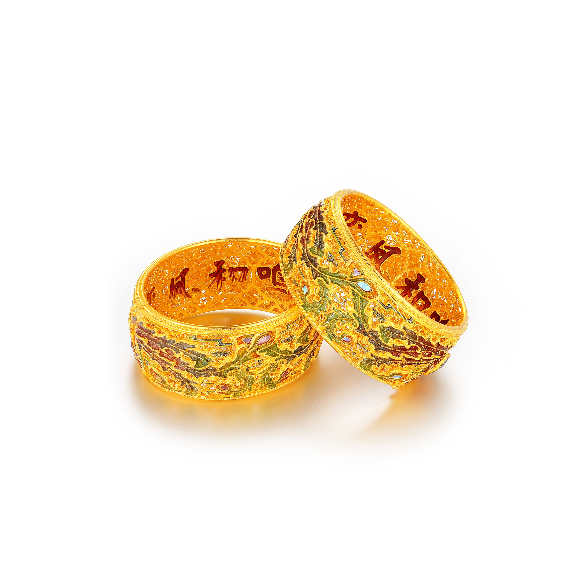 古法经典花卉鎏彩螺钿卡扣手镯