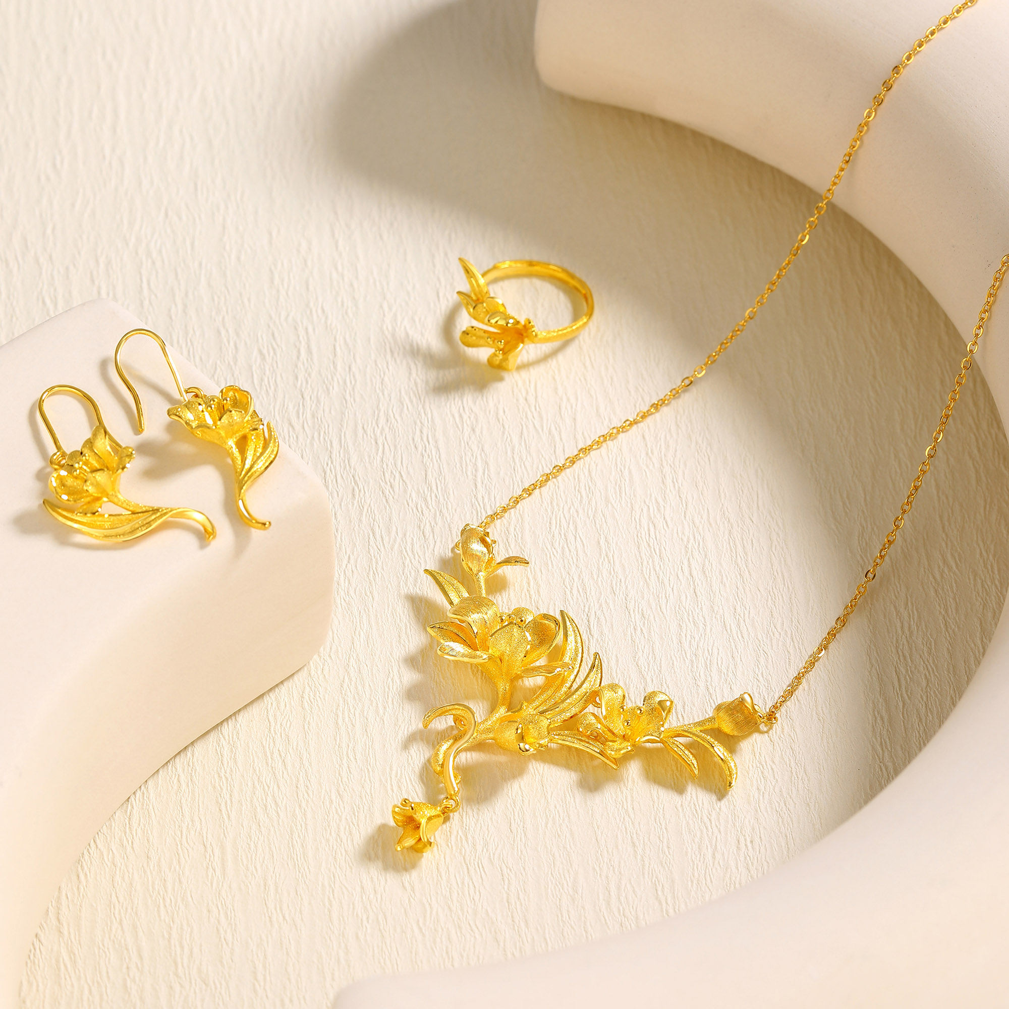 足金精品甜蜜心形丝绒绕线时尚三件套