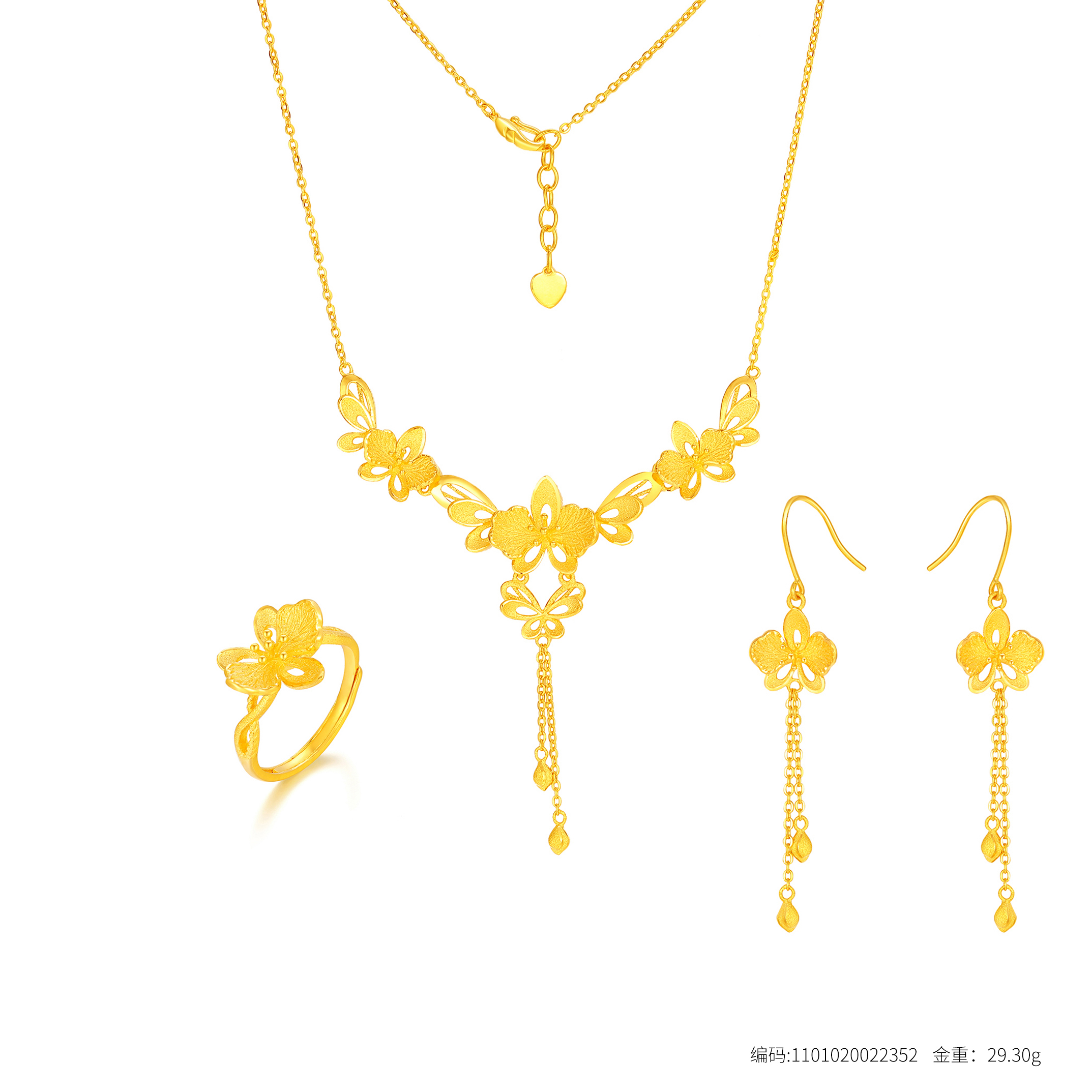 足金精品优雅婚庆蝴蝶兰时尚套装