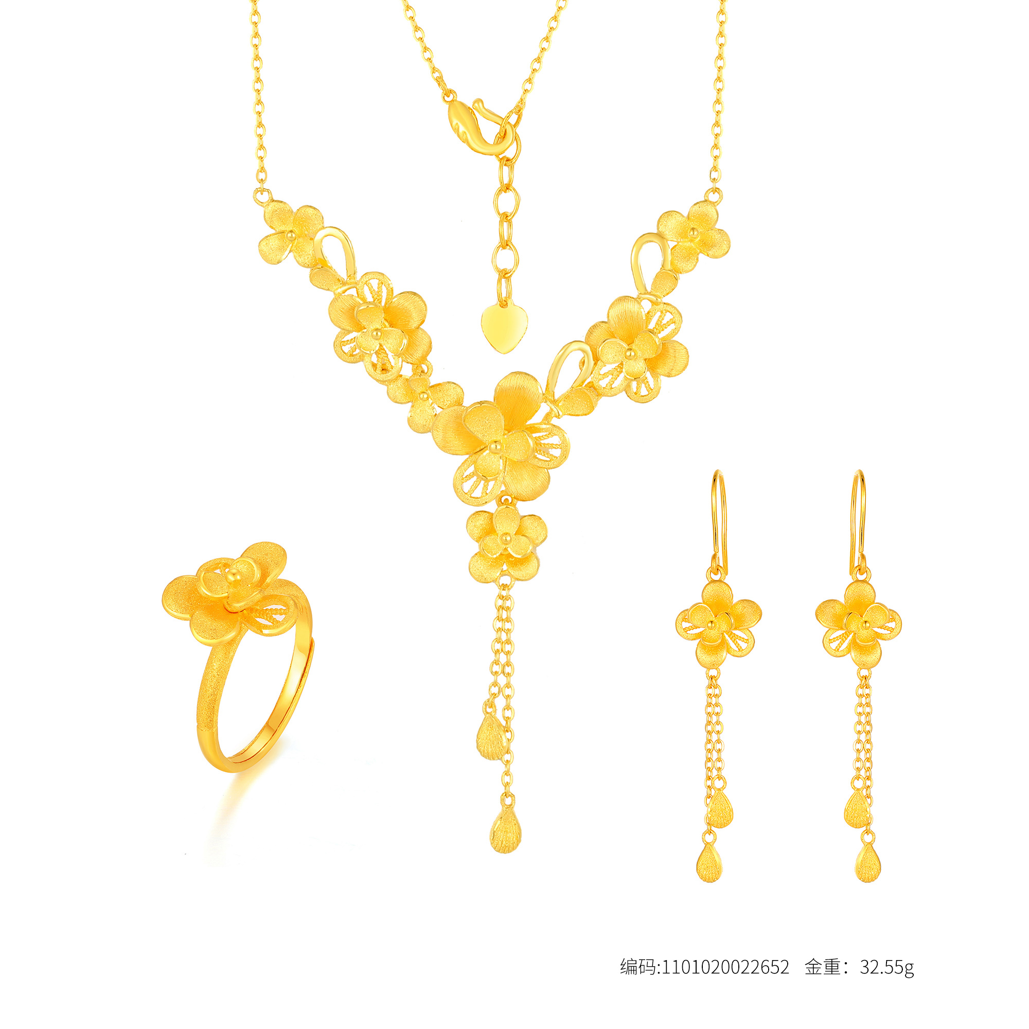 >>足金精品浪漫花卉婚嫁三件套