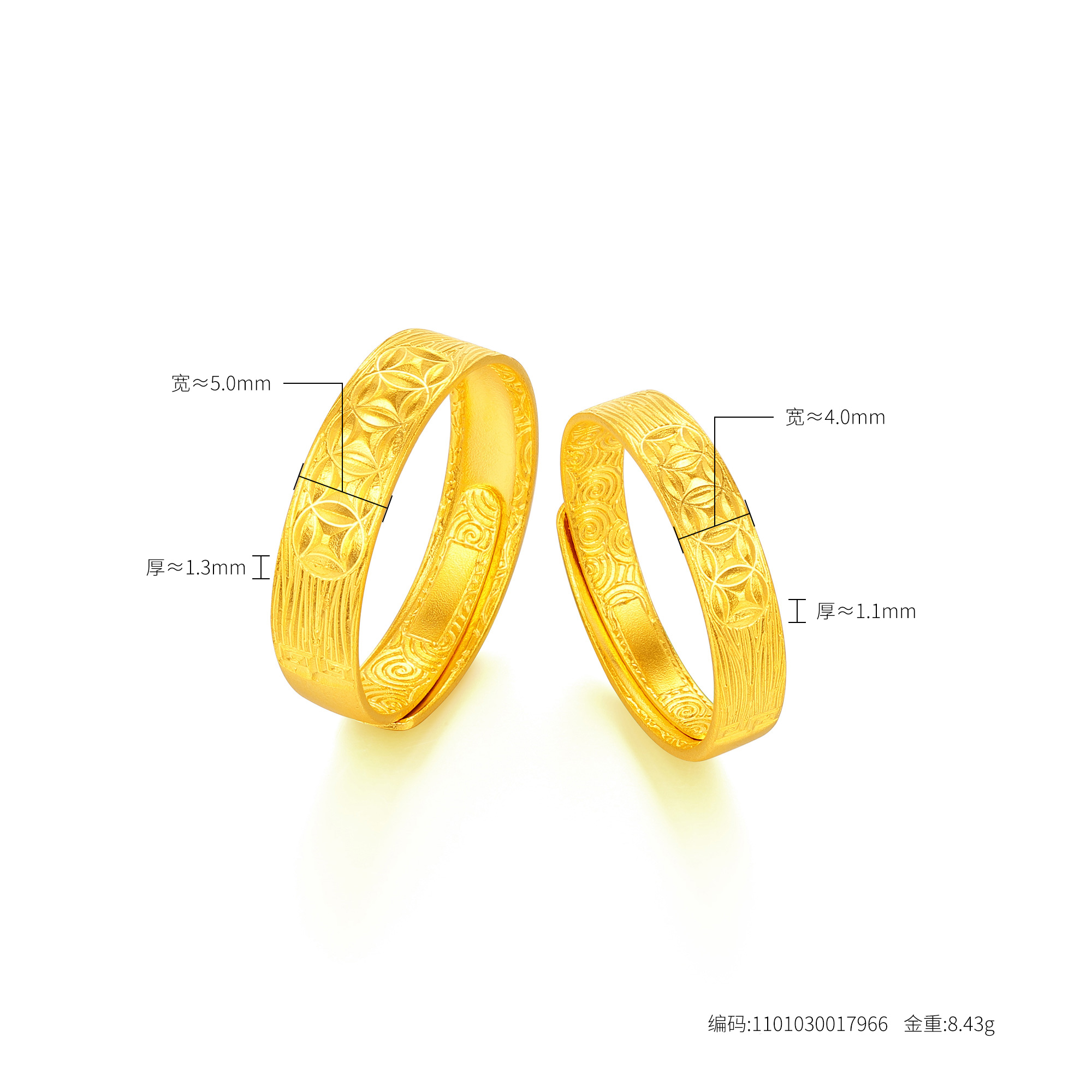 >>古法经典吉祥铜钱几何情侣对戒