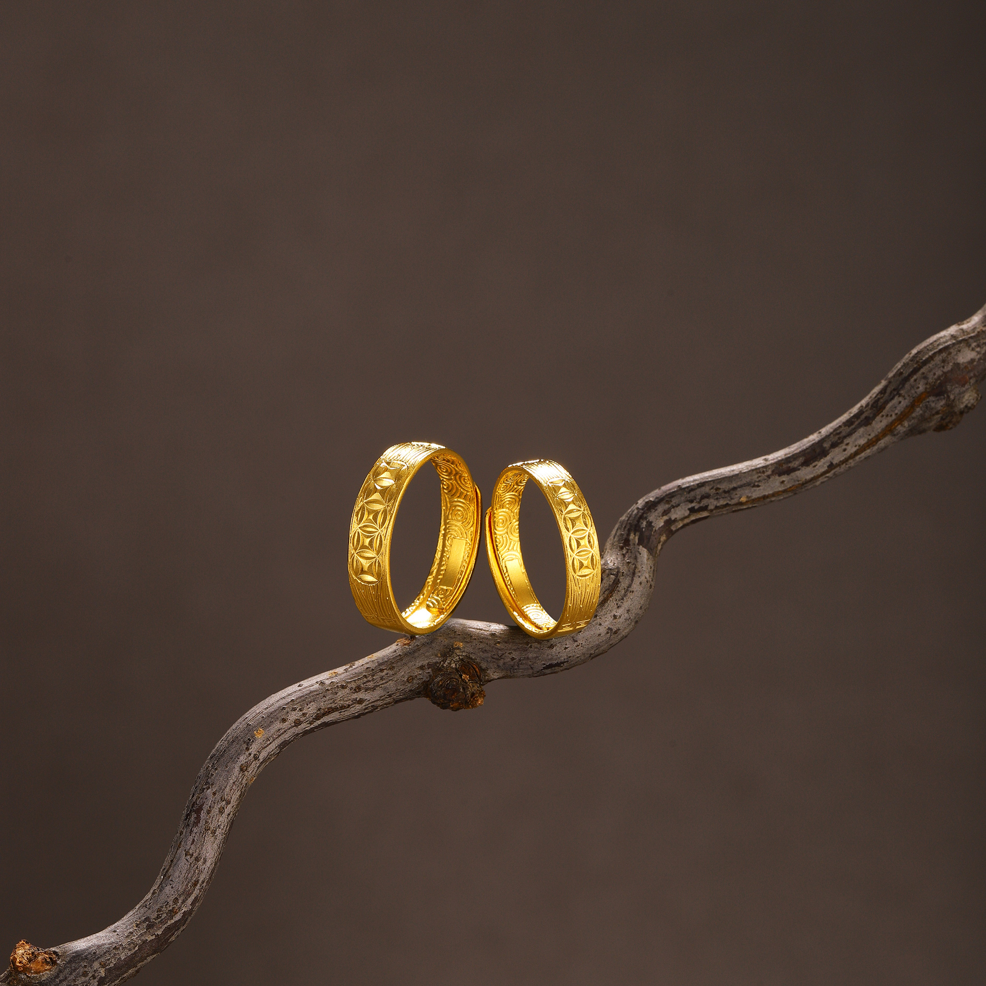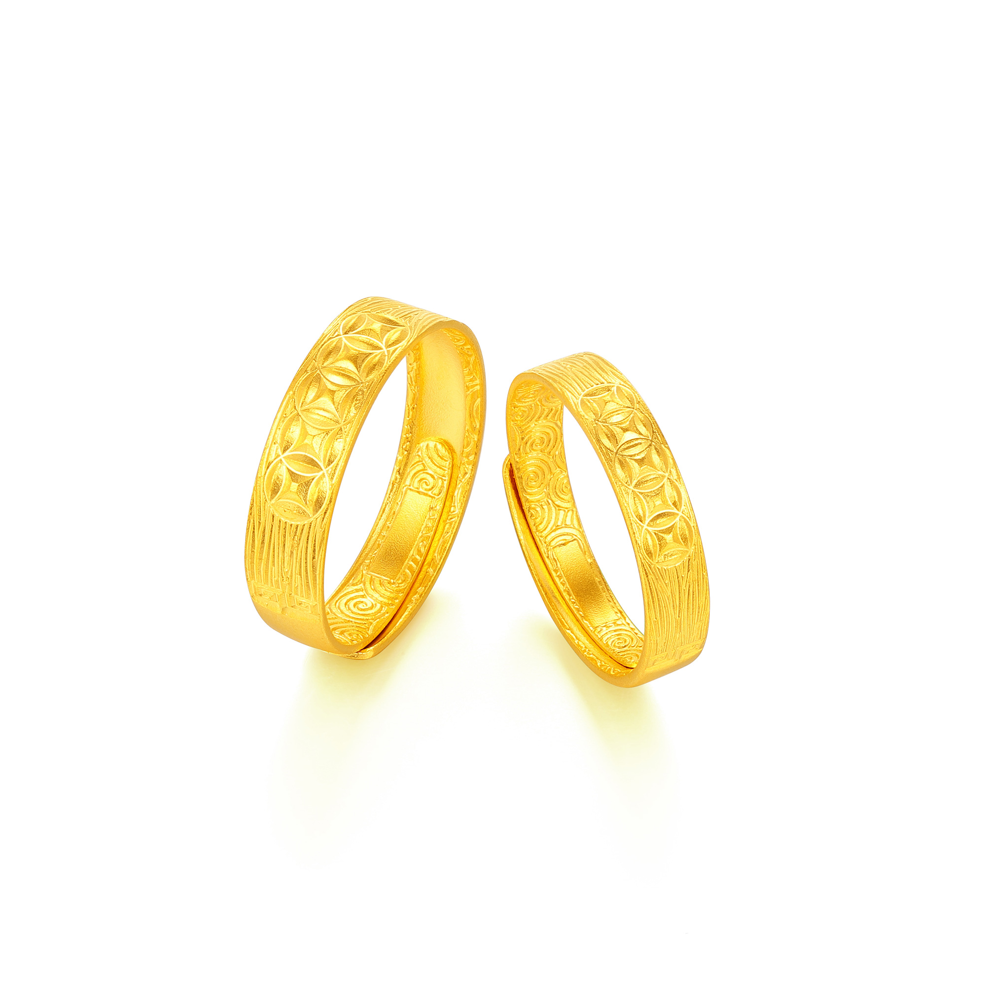 古法经典吉祥铜钱几何情侣对戒