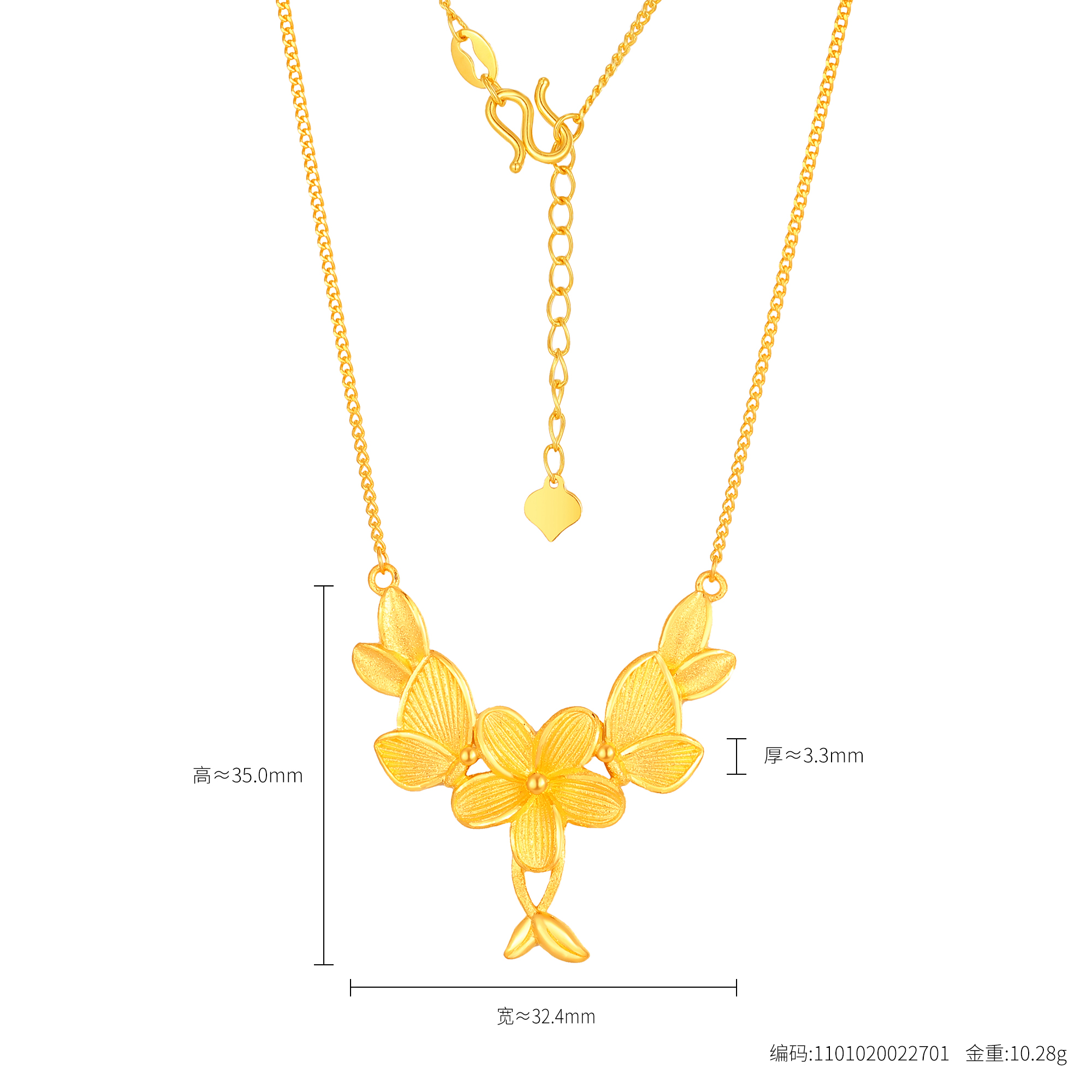 足金精品花头刺绣项链
