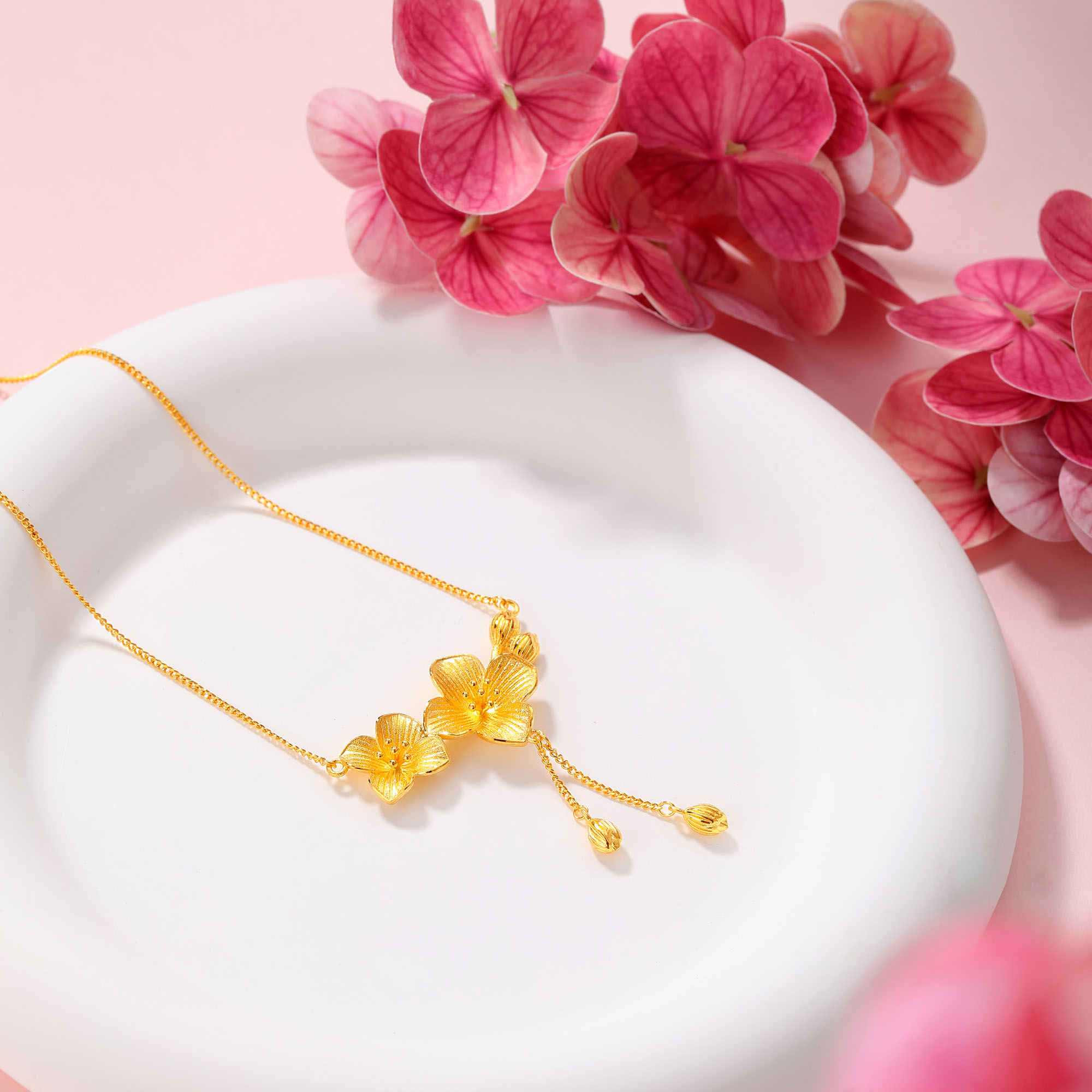足金精品流苏花卉婚庆套链
