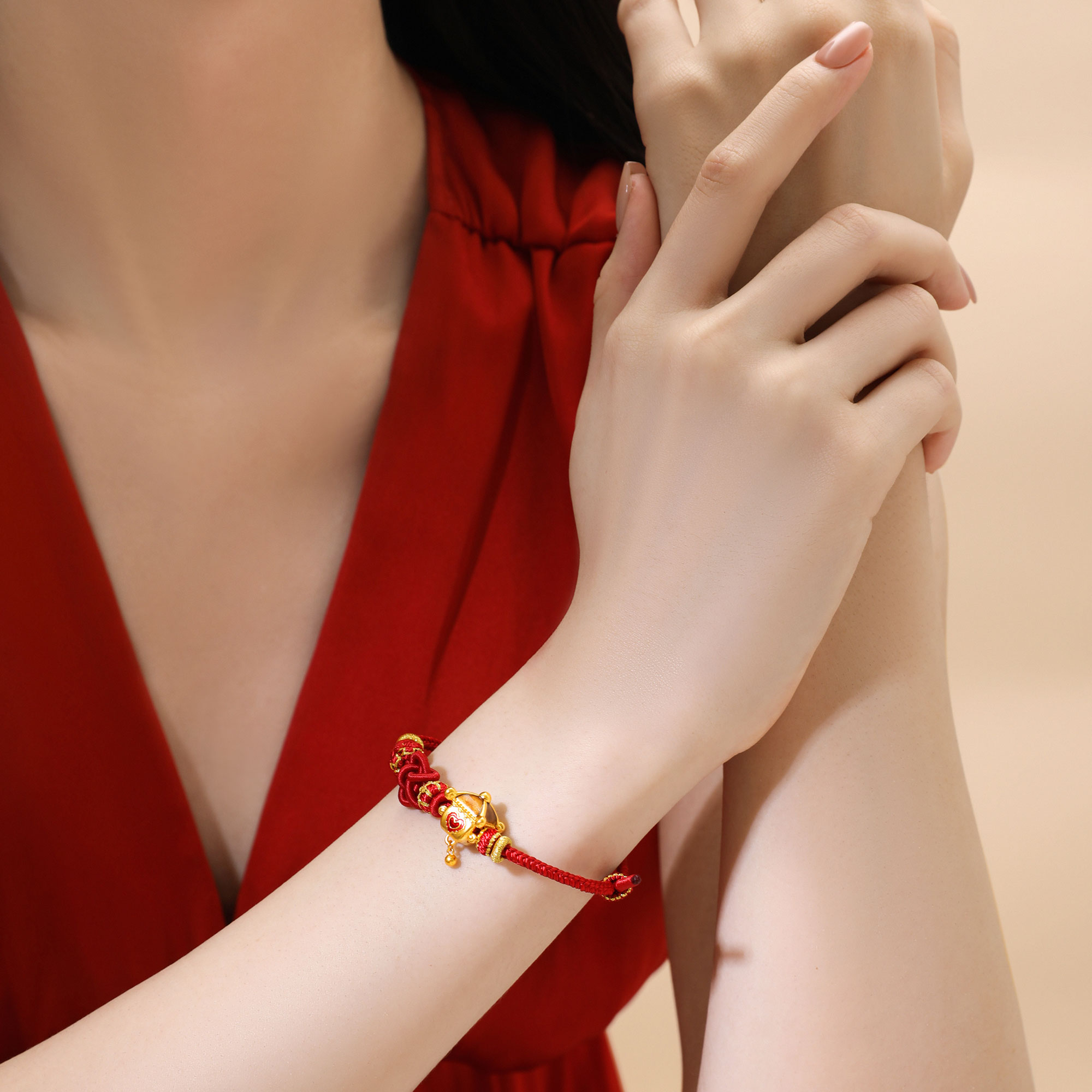 无氰硬金婚庆花轿爱心鎏彩手绳转运珠