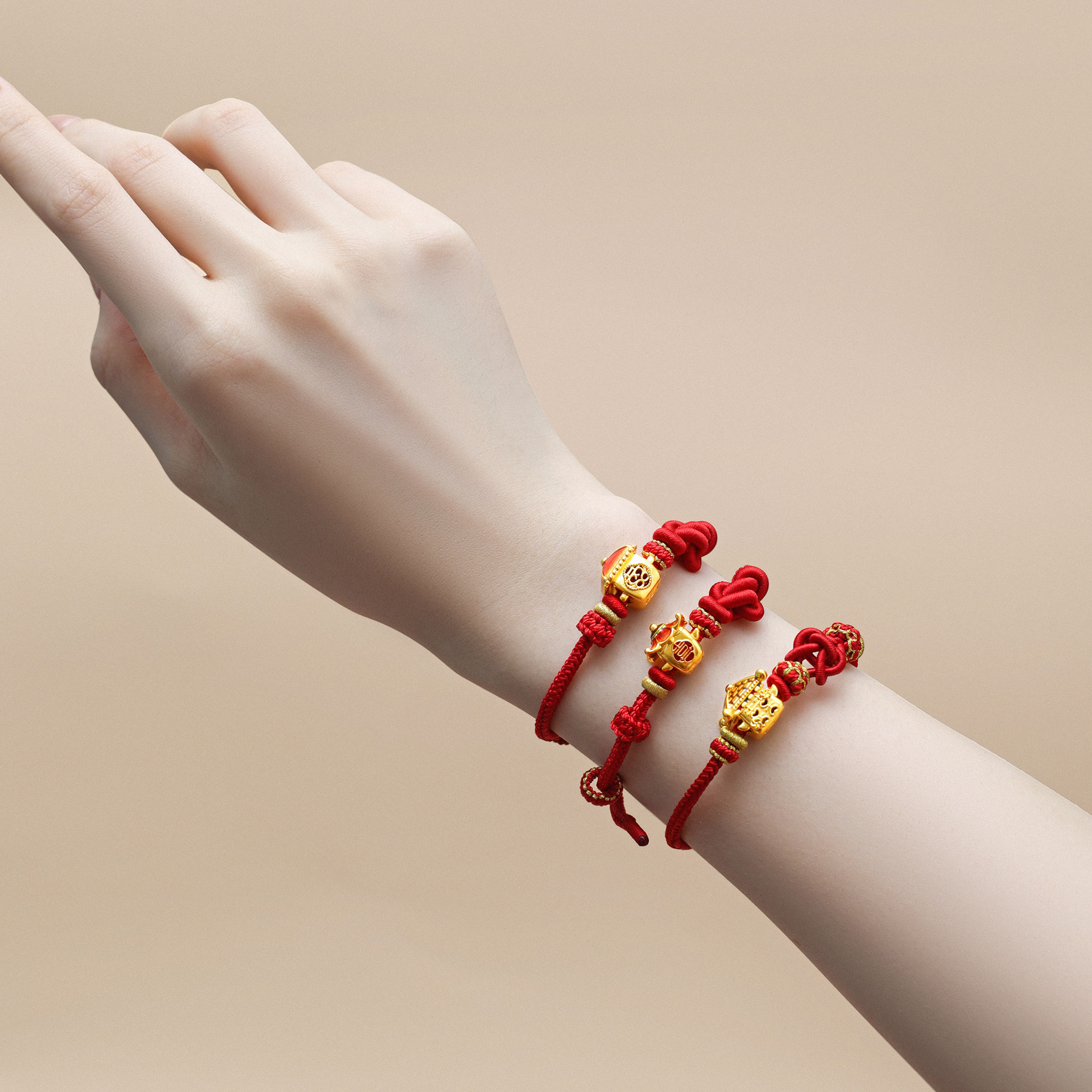 无氰硬金婚庆花轿爱心鎏彩手绳转运珠