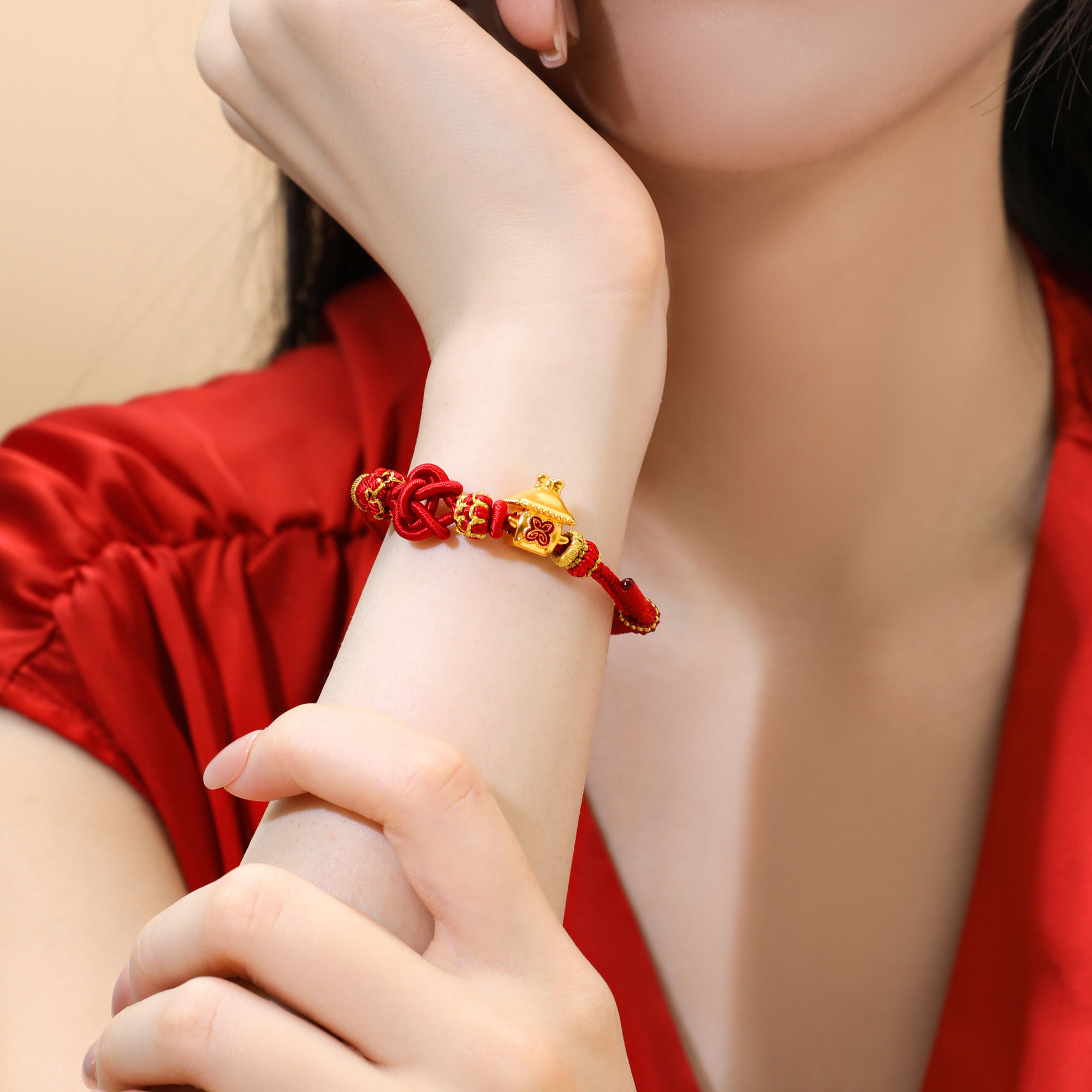 无氰硬金婚庆花轿爱心鎏彩手绳转运珠