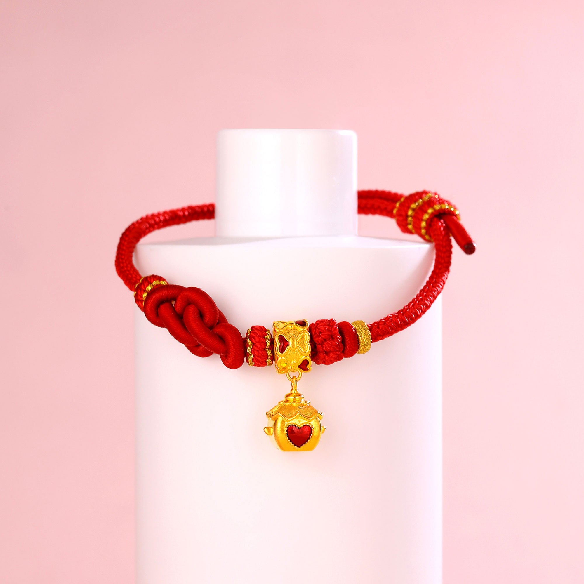 无氰硬金婚庆花轿爱心鎏彩手绳转运珠