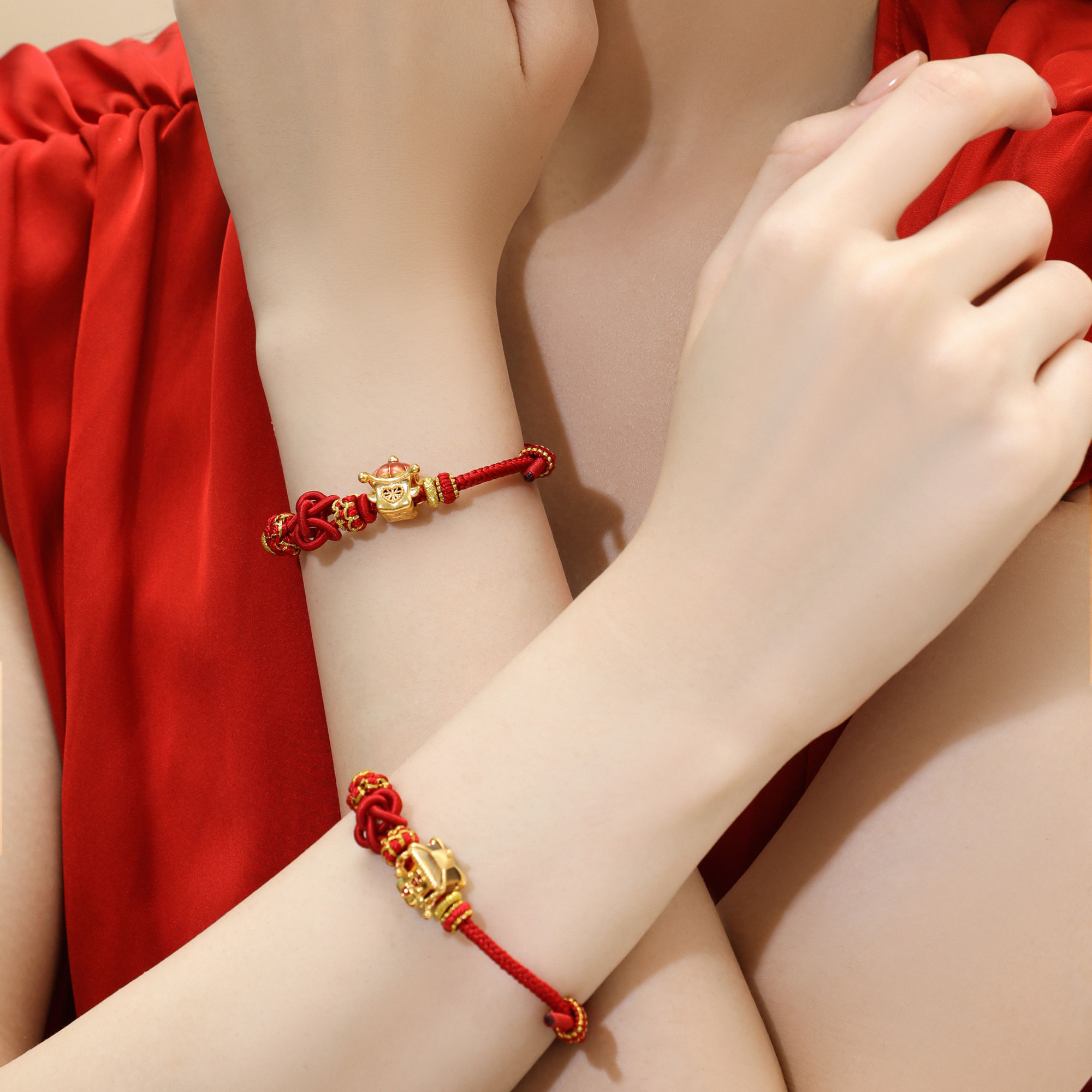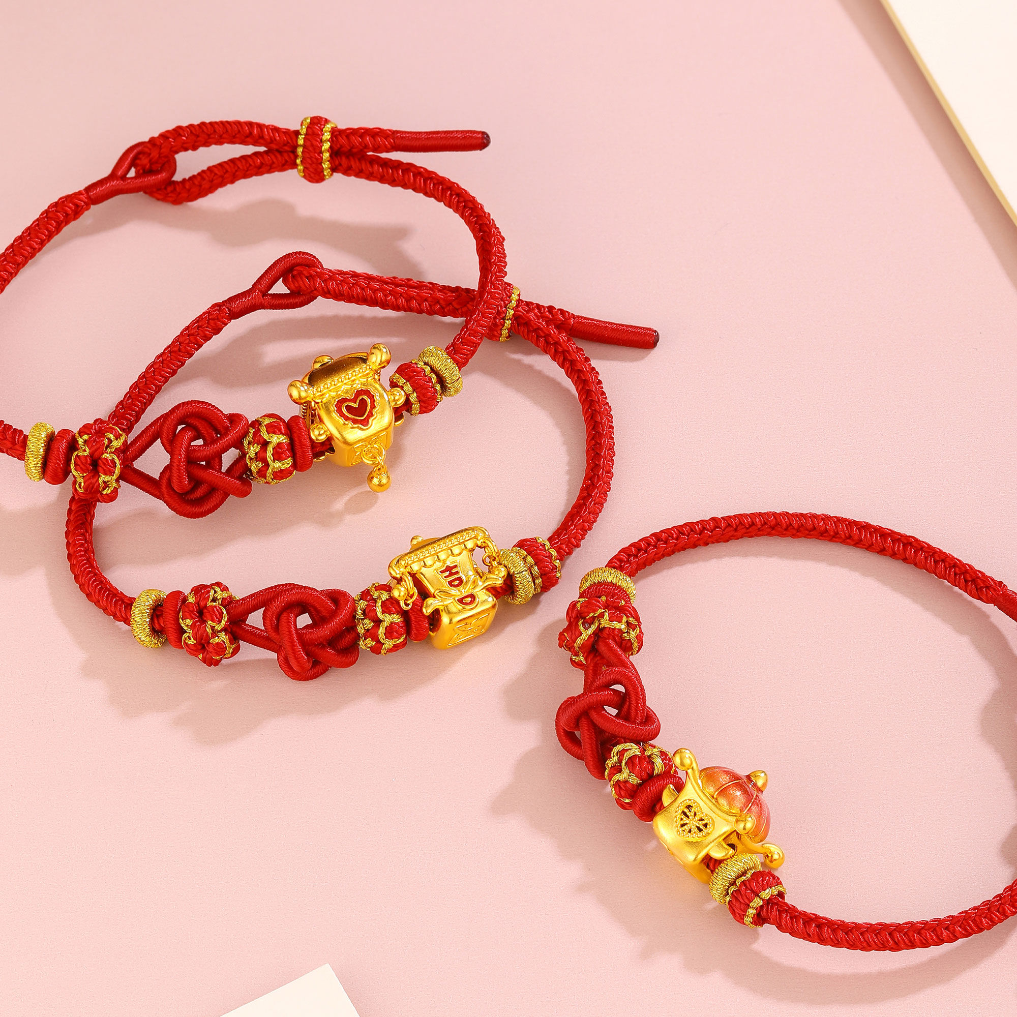 无氰硬金婚庆花轿爱心鎏彩手绳转运珠