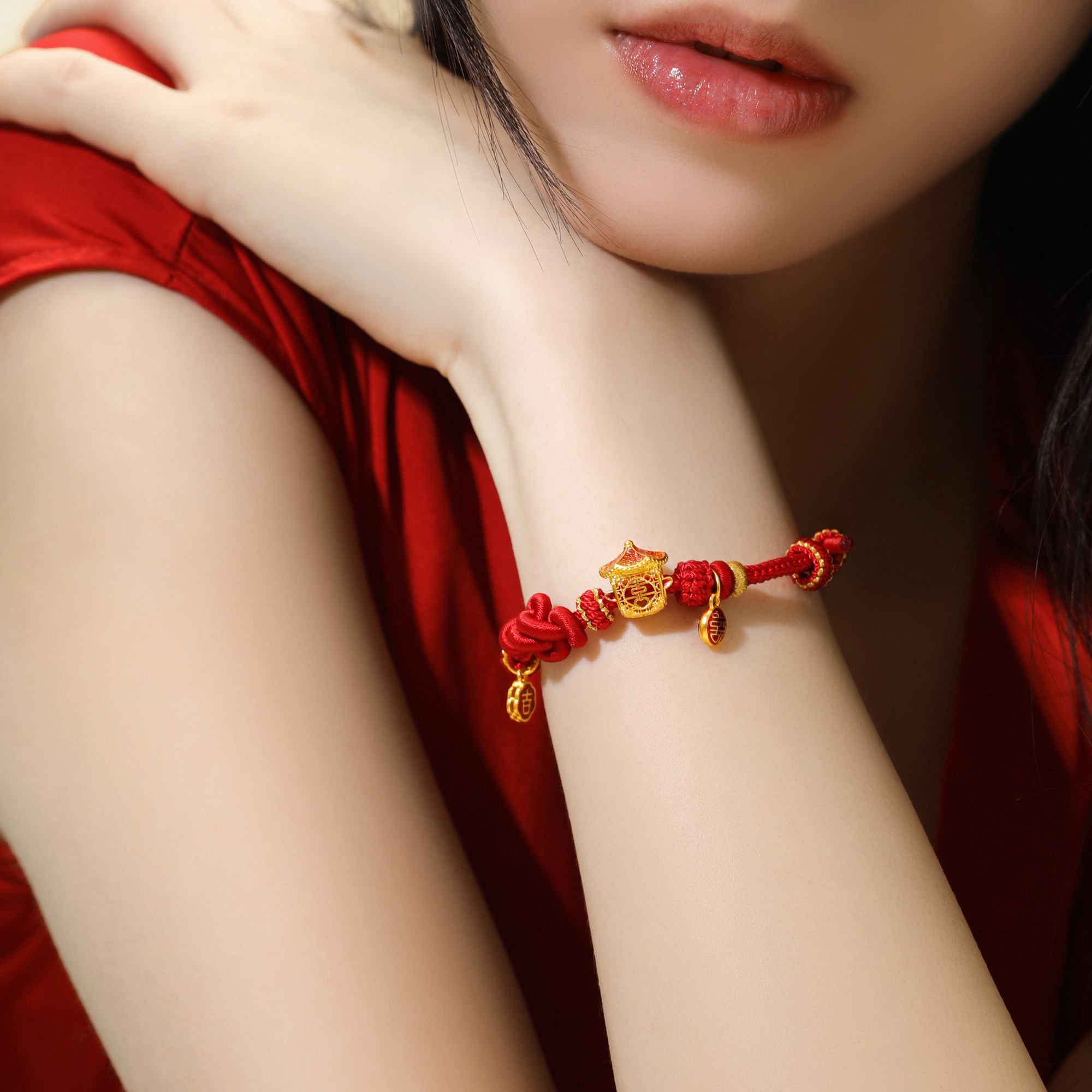 >>古法婚庆花轿双喜鎏彩手绳转运珠