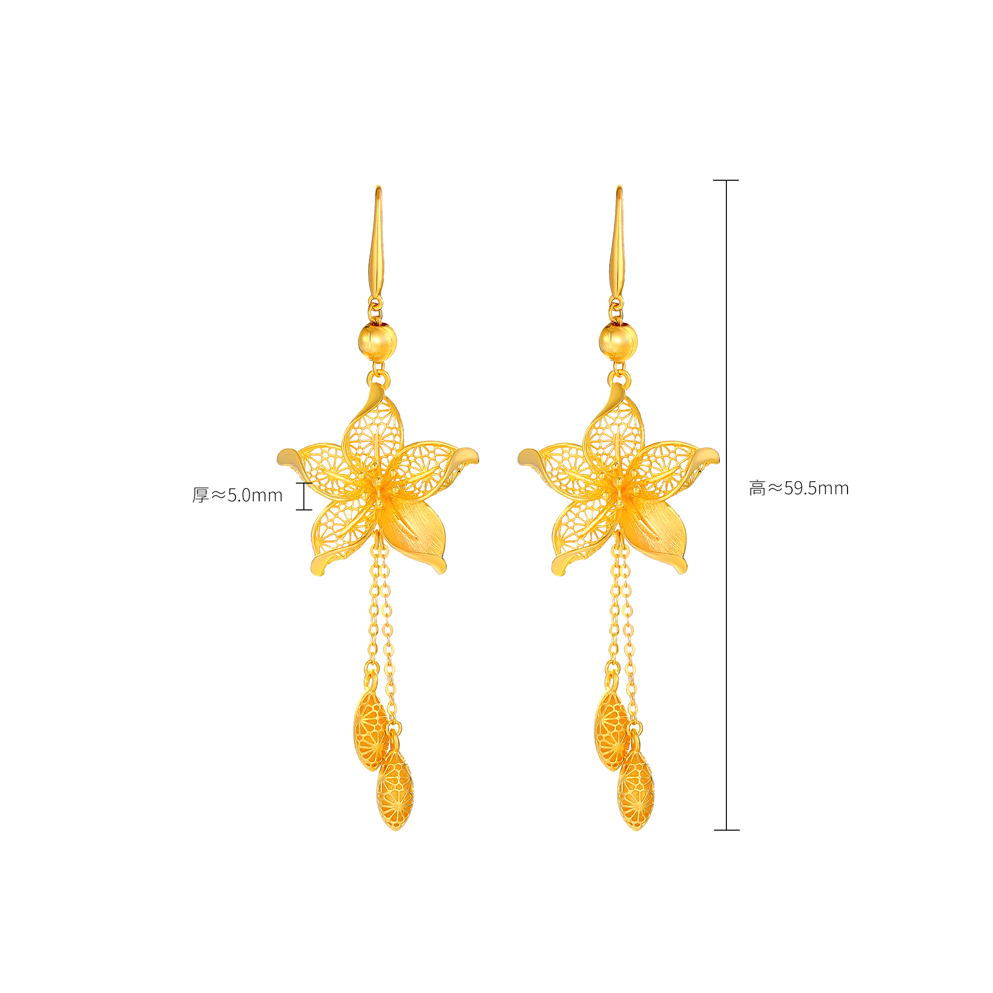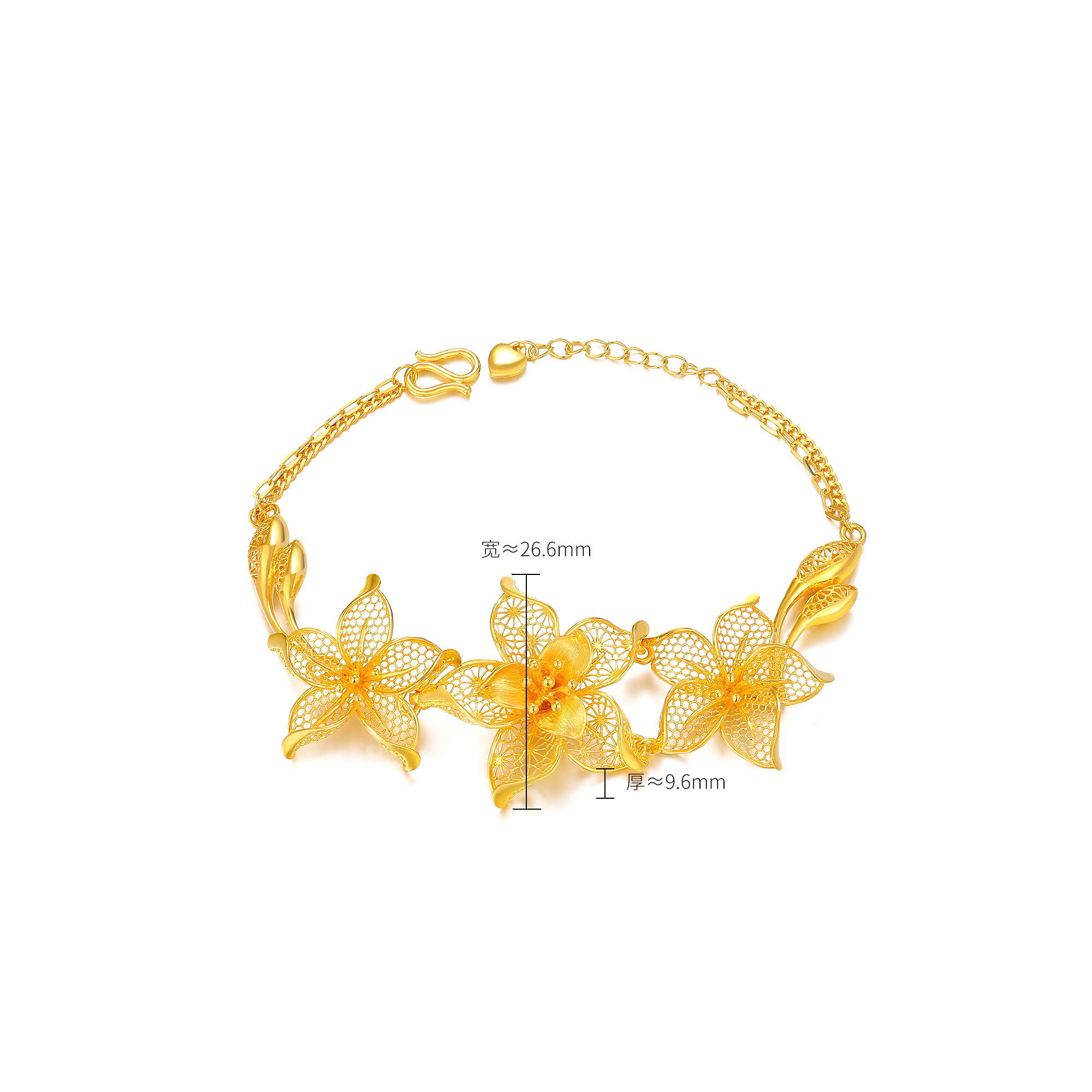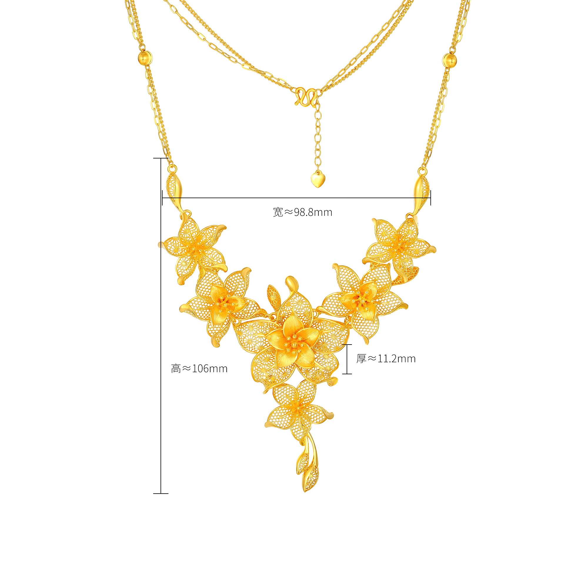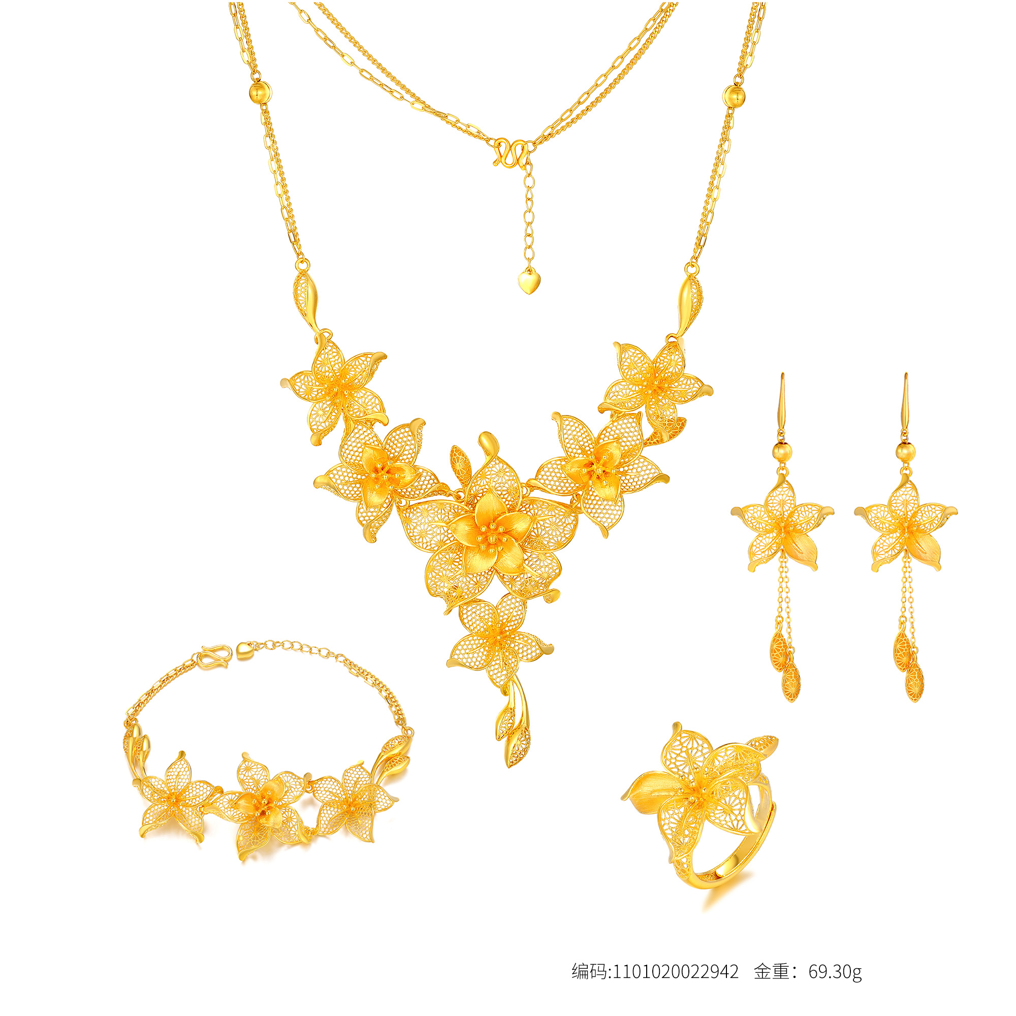 足金精品浪漫婚庆花丝蝴蝶兰拉丝三件套