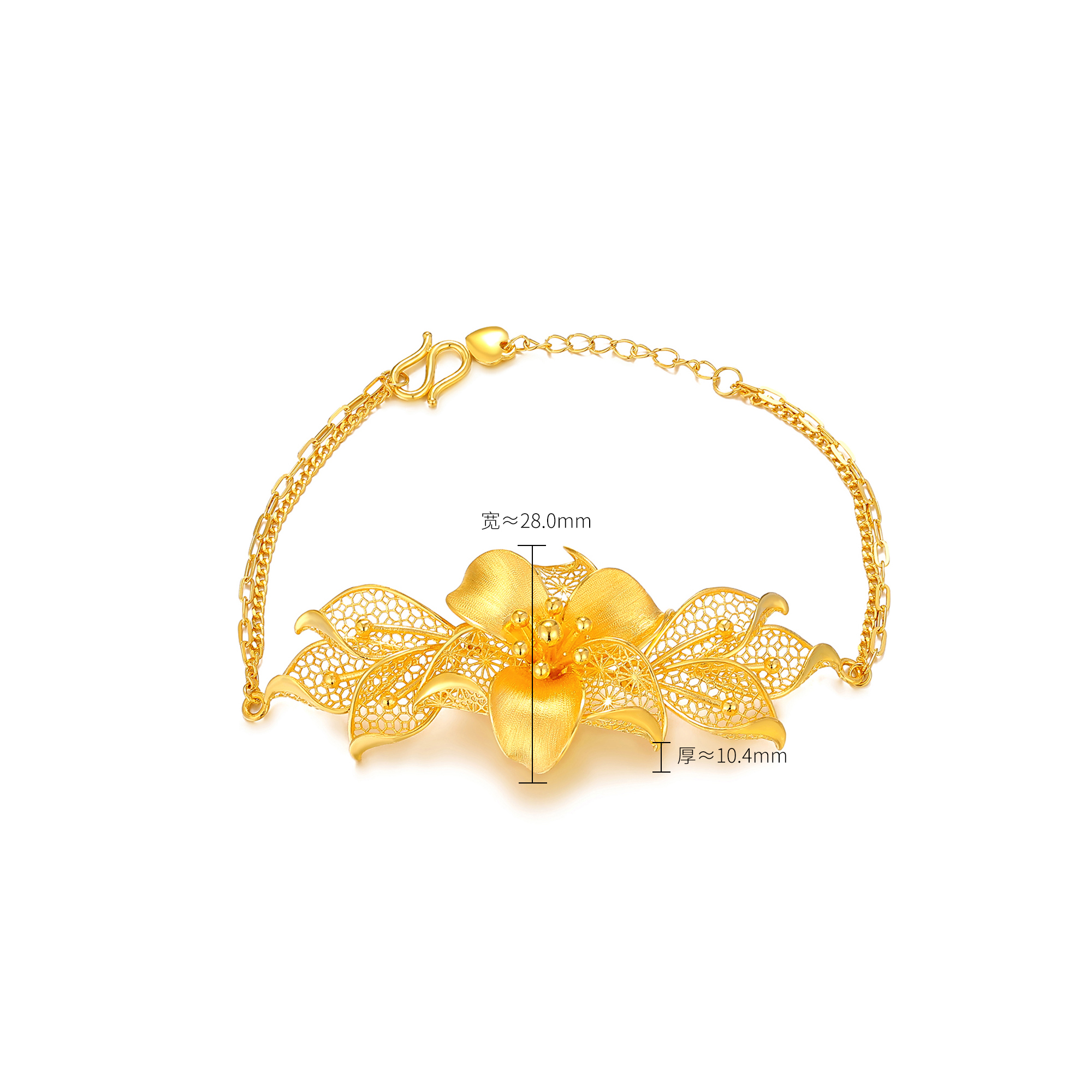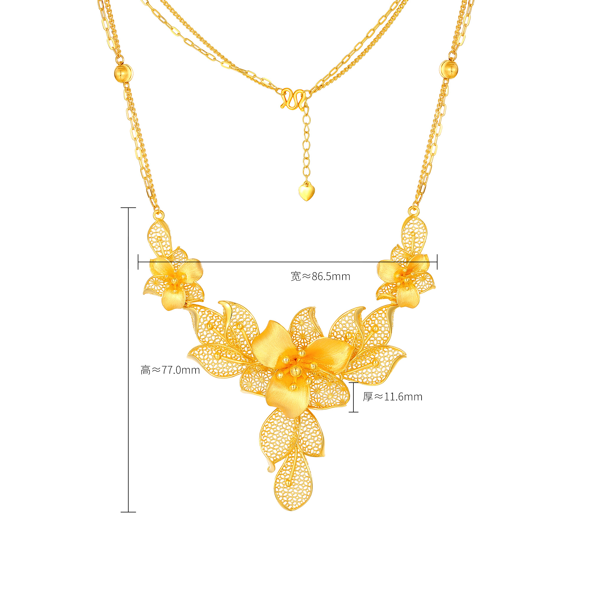 足金精品浪漫婚庆花丝蝴蝶兰拉丝三件套