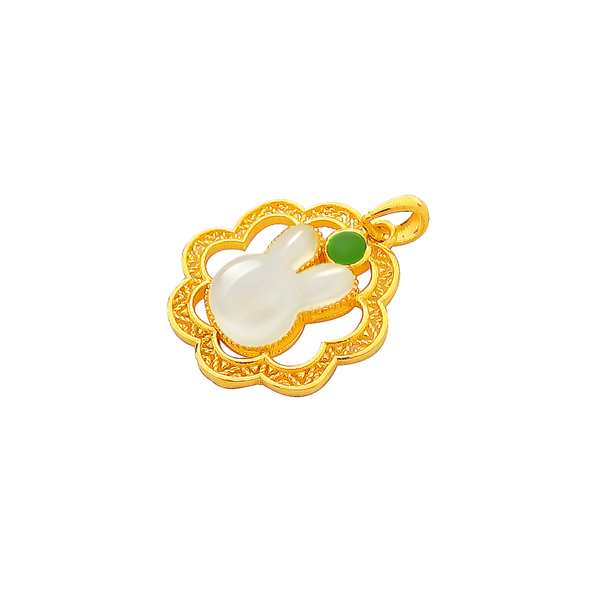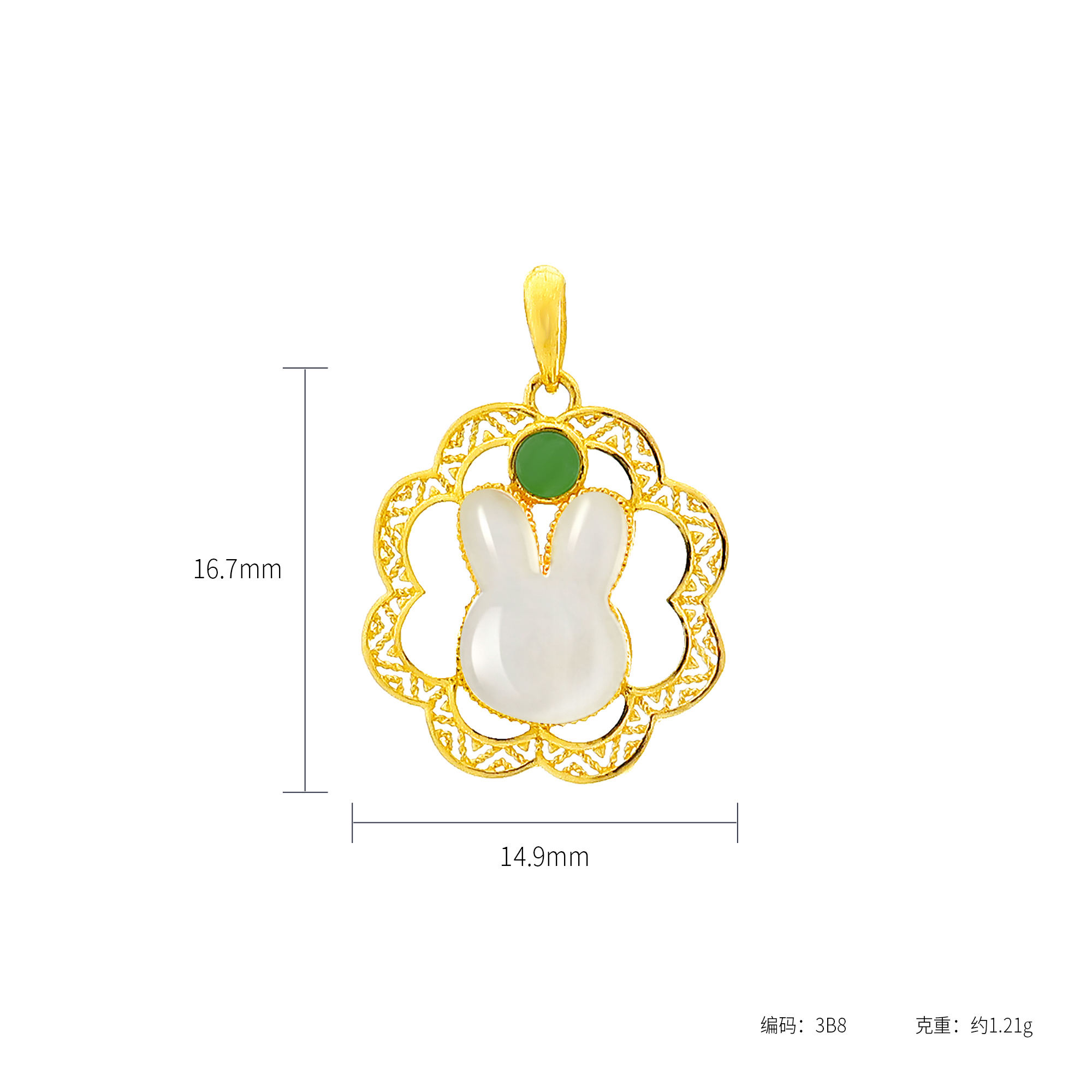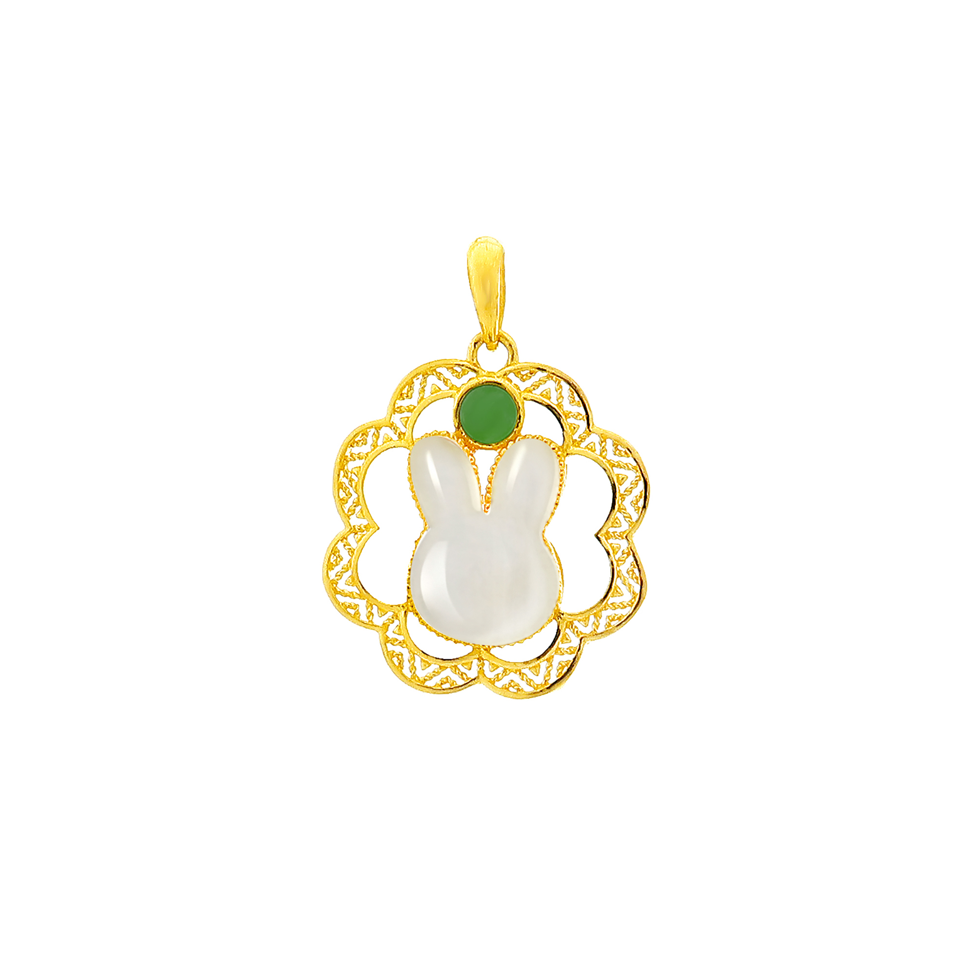 足金和田玉吉星兔吊坠