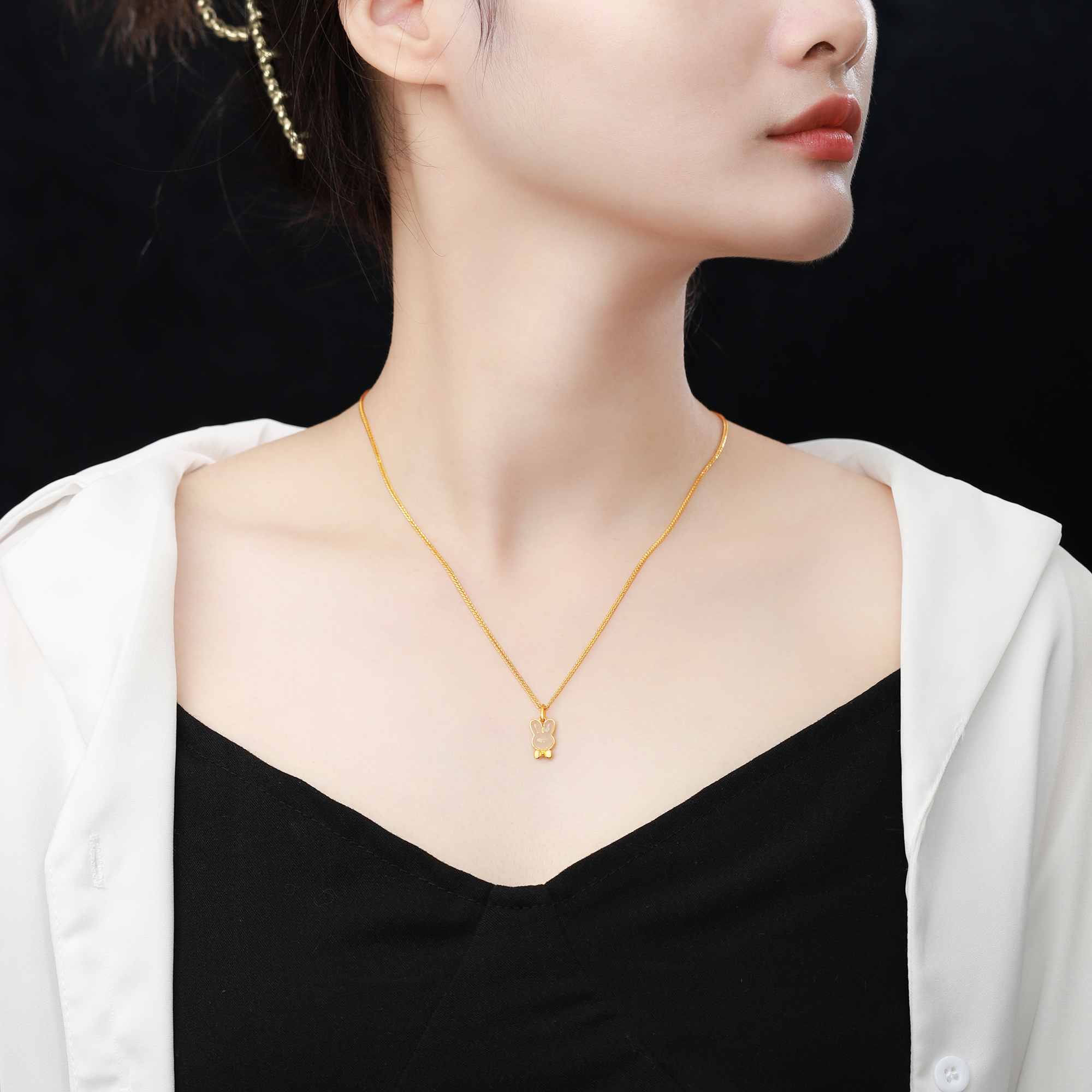 足金和田玉兔子吊坠