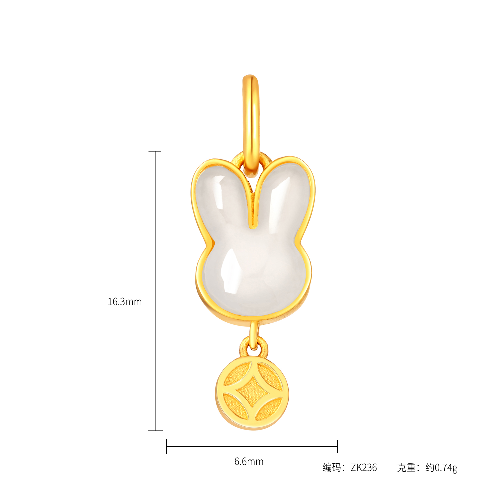 足金和田玉吉星兔吊坠