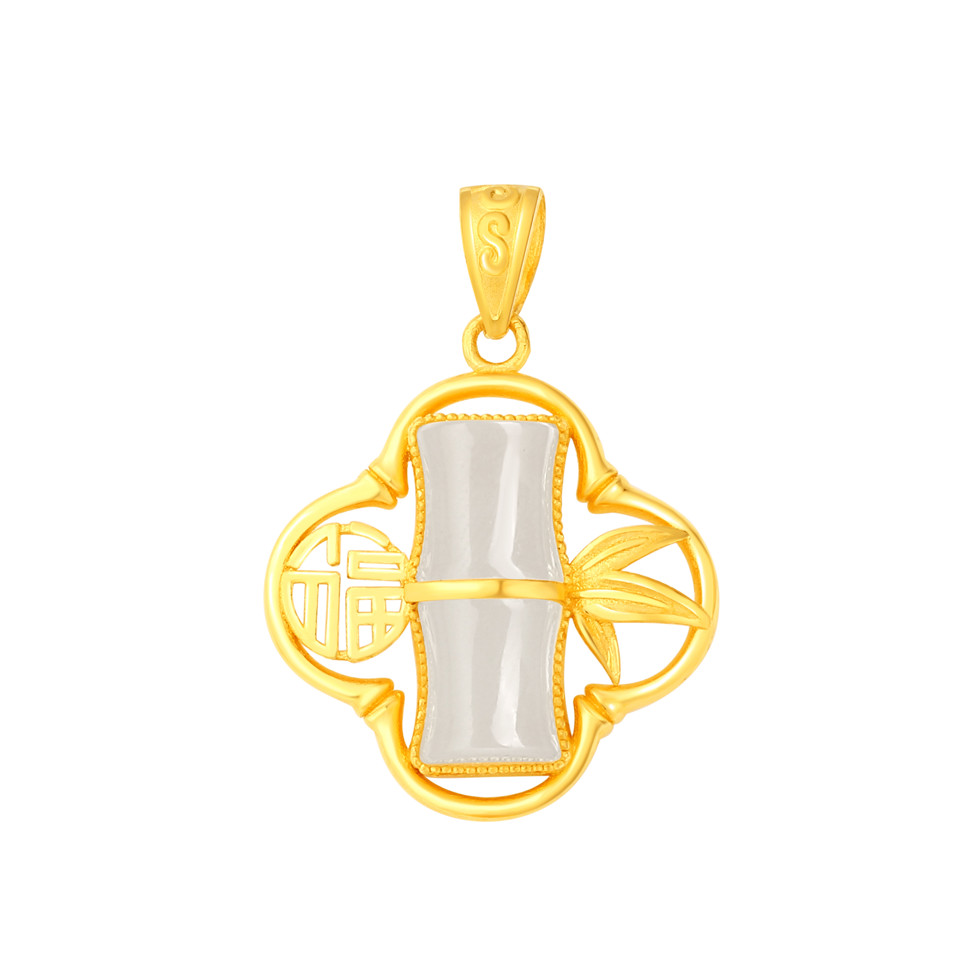 足金鎏彩吉庆祥和可爱灵动和田玉萌象吊坠