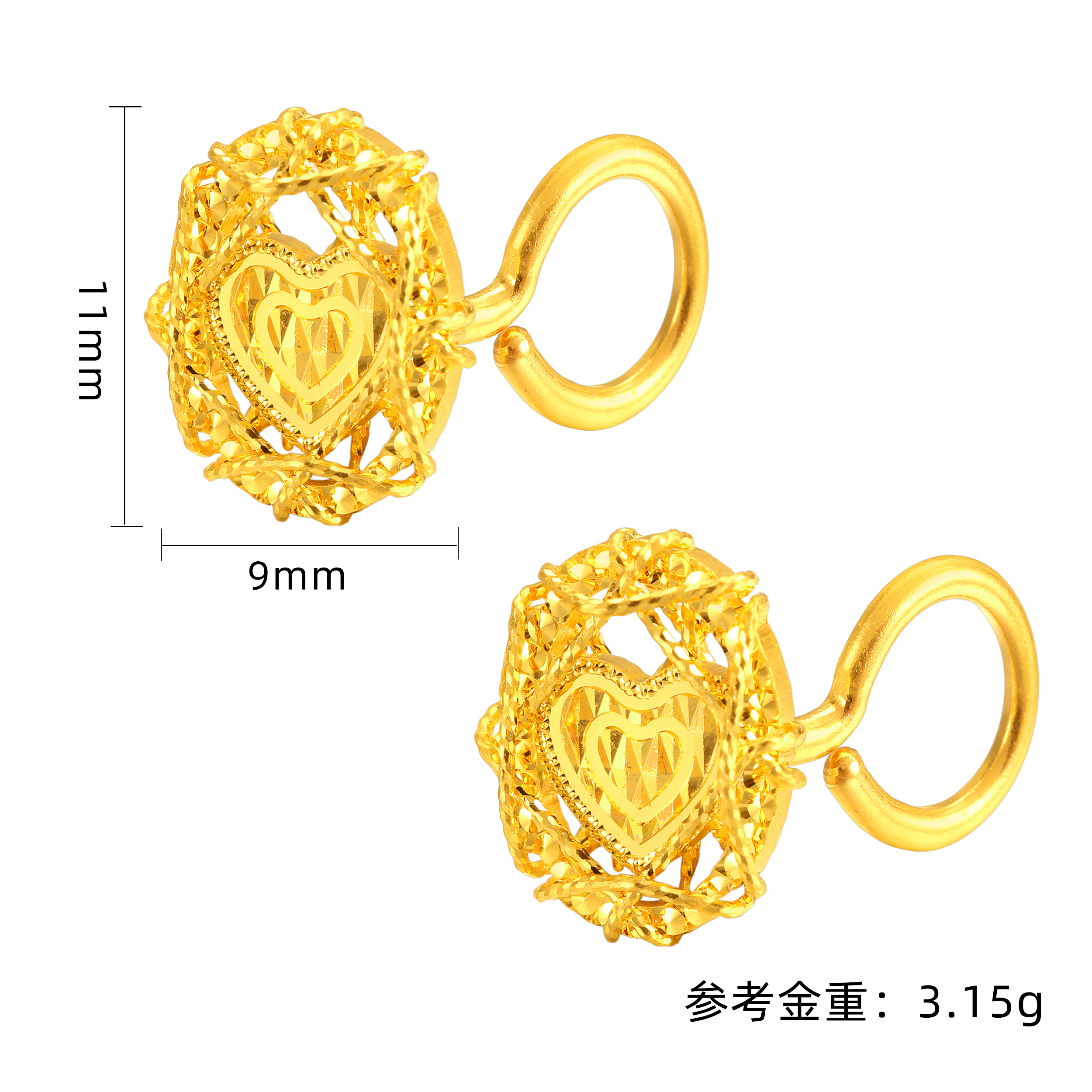 素金爱心CNC耳钩