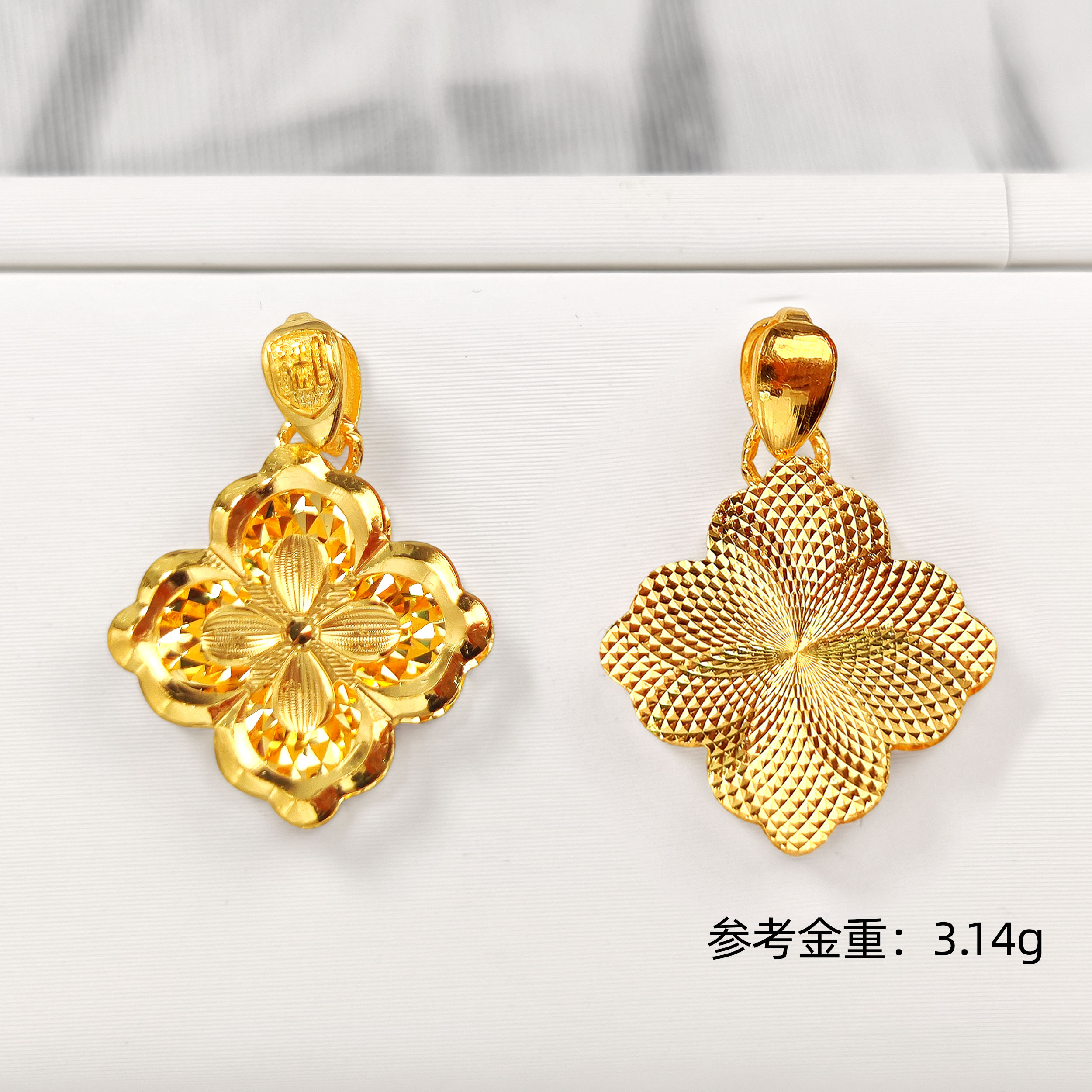 素金四叶草CNC吊坠