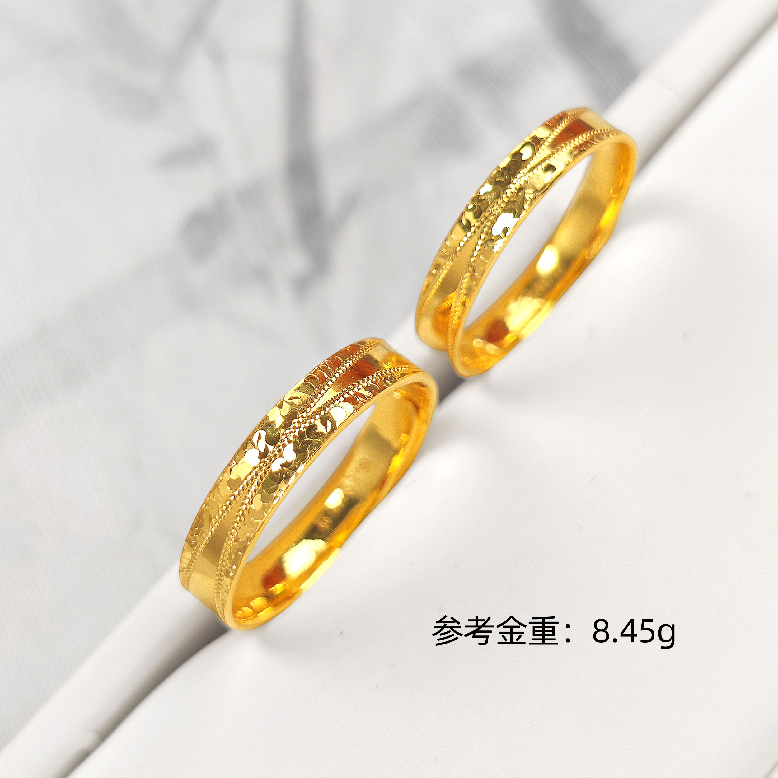 素金钱多多金币爆闪碎碎金CNC对戒