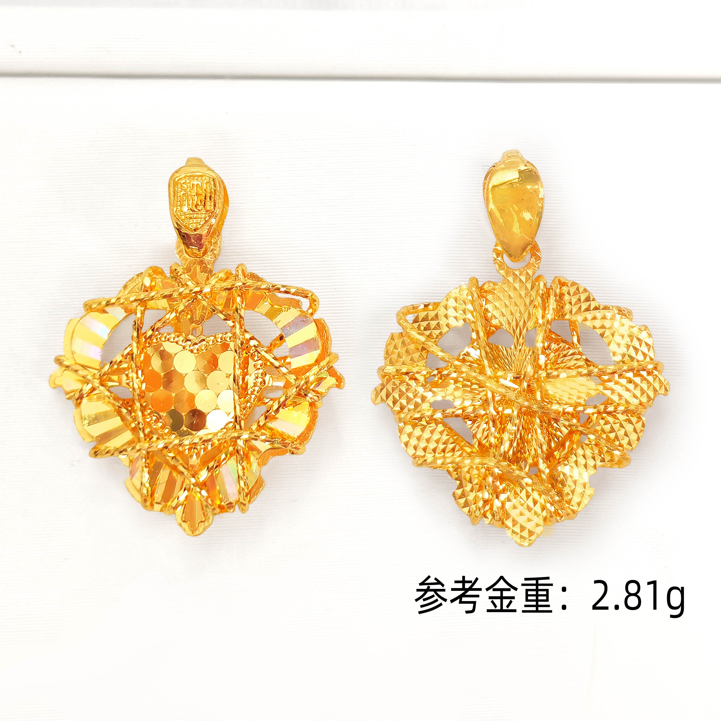 素金爱心灿金绕线碎碎金CNC吊坠